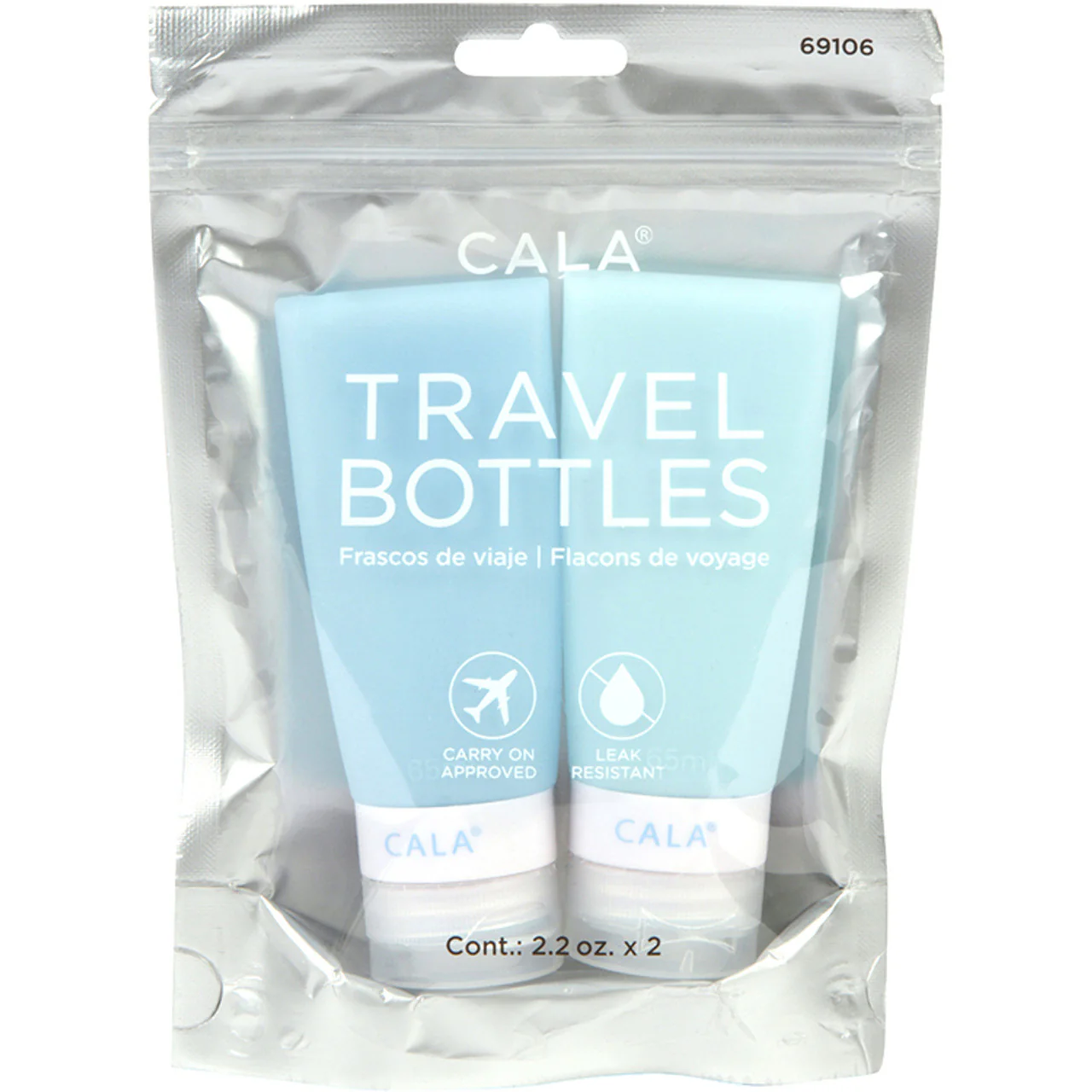 BOUTEILLES DE VOYAGE EN SILICONE : BLEUES – 65.06