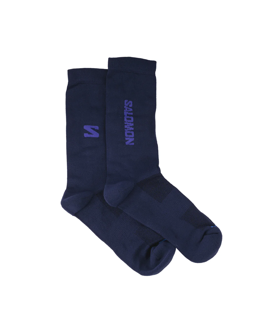 La 365 Crew est une paire de chaussettes montantes pensée pour un usage quotidien. Fabriquée en coton mélangé de qualité, elle assure respirabilité, confort et tenue parfaite grâce à ses zones côtelées au niveau de la voûte plantaire et de la cheville. Le branding discret Salomon vient signer le look, entre sobriété urbaine et technicité assumée.
