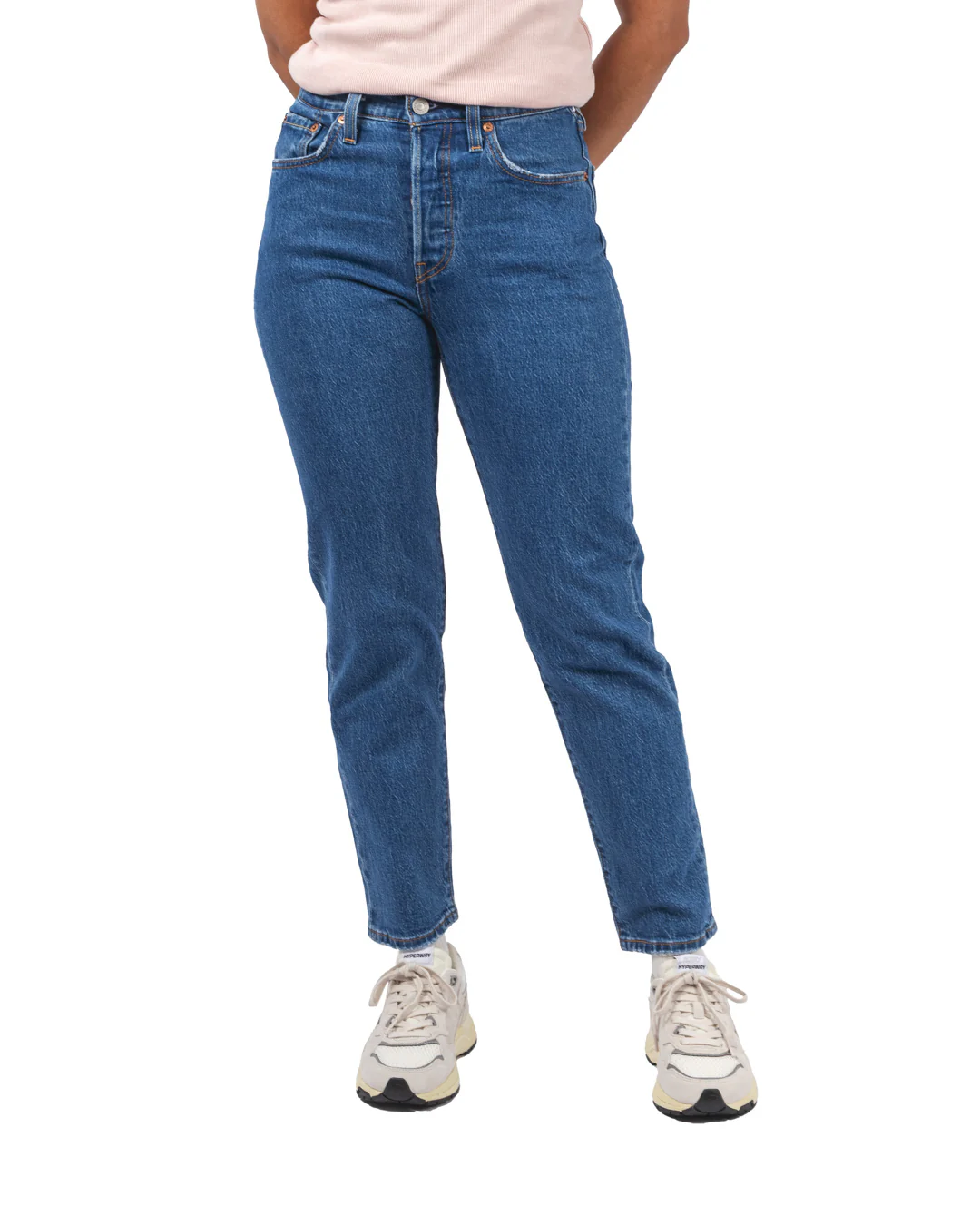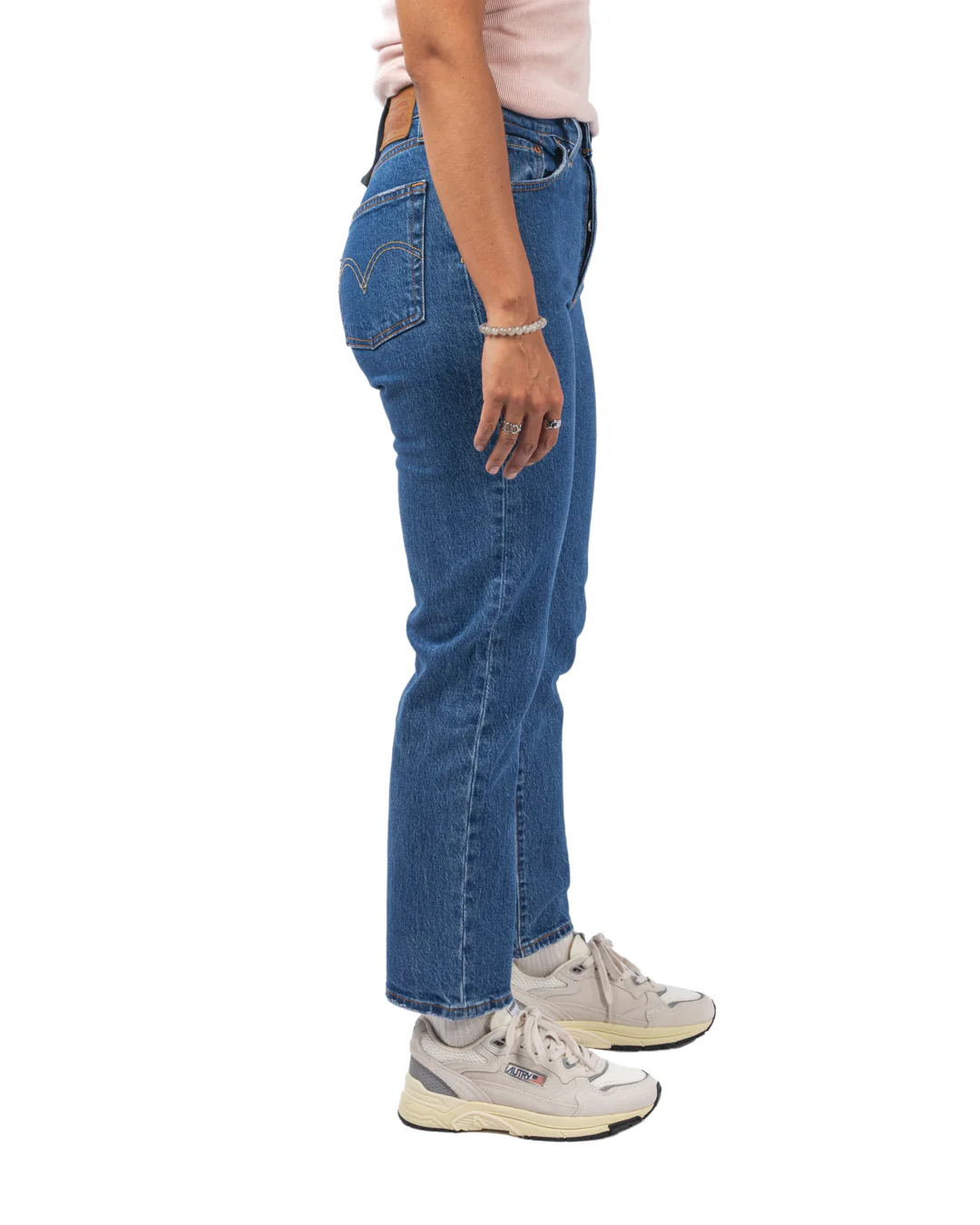 Cette version cropped (cheville dégagée) propose une coupe droite et taille mi-haute, fidèle à l’original, avec une longueur raccourcie pour une allure plus légère et dynamique. Confectionné en denim de coton robuste (souvent avec une touche de stretch selon les déclinaisons), il conserve les détails caractéristiques : braguette boutonnée, rivets en cuivre, étiquette rouge Levi’s et patch arrière en cuir.