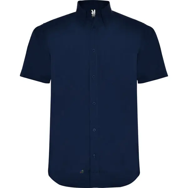 Chemise à manches courtes et col classique amidonné avec un bouton. · Poche avant gauche. · Patte de boutonnage à 7 boutons et ourlet profilé assortis. · Entretien facile.