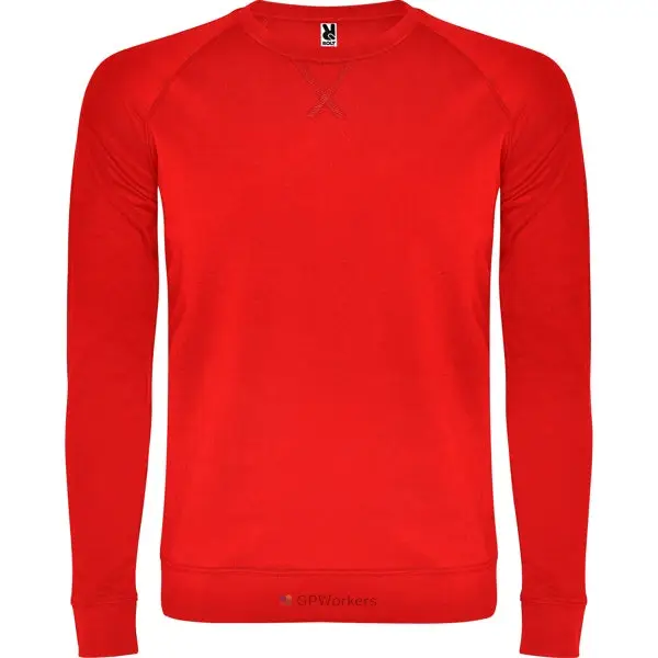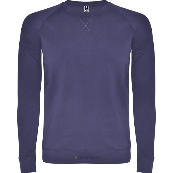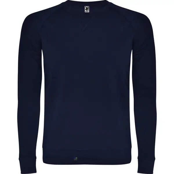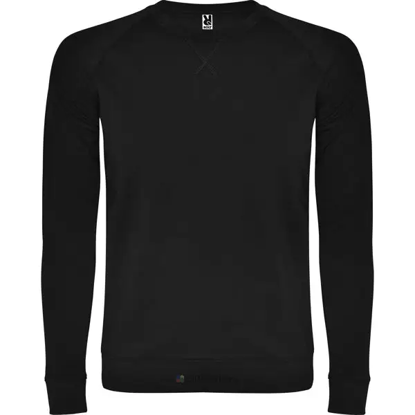 Sweat en coton manches longues raglan. Avec col, poignet et ceinture en côte 1×1. Col rond ornementé avec détail centré de couture croisé et bande de propreté renforcée à l’intérieur du col.