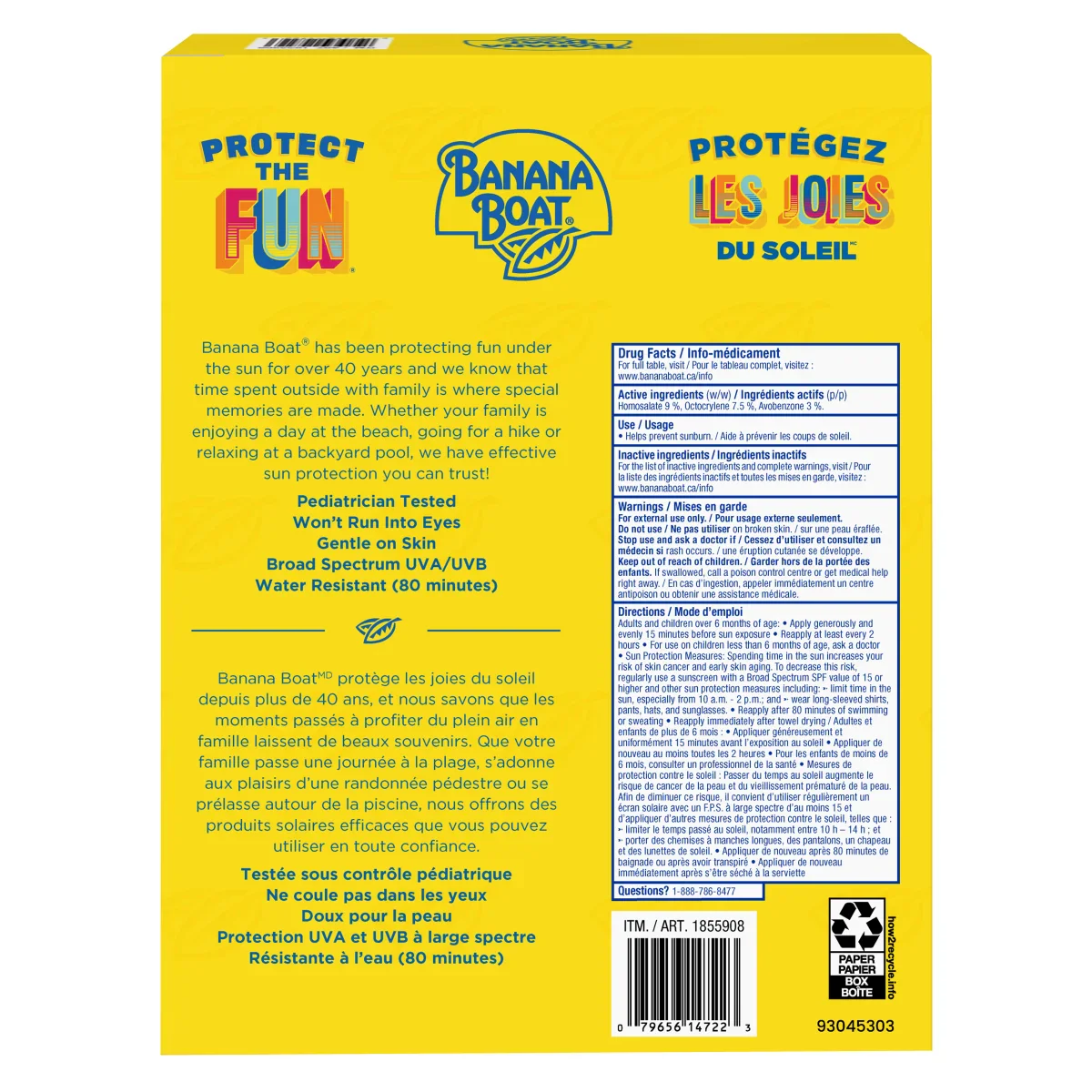 Testée par des pédiatres, la lotion écran solaire pour enfants de Banana Boat ne coule pas dans les yeux et ne contient pas d’huiles ni de parfums ajoutés. Si vous recherchez un écran solaire qui est doux pour la peau de votre enfant et doté d’une protection UVA et UVB à large spectre, Banana Boat a la solution qu’il vous faut. L’écran Banana Boat tient bon dans toutes sortes de conditions pour que le plaisir soit toujours au rendez-vous!