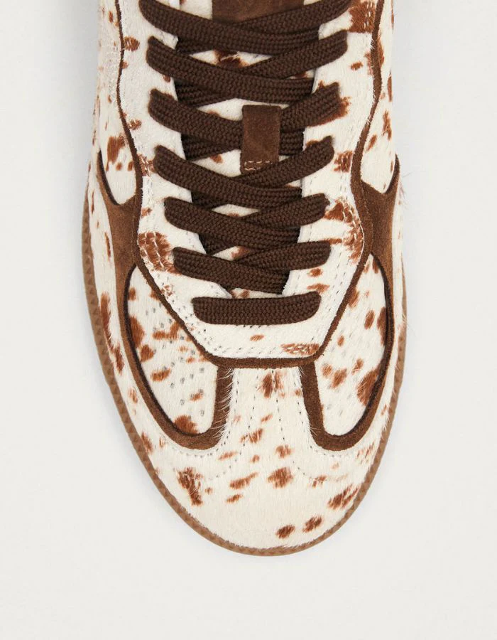baskets cuir camel, baskets Alohas Tb.490, baskets poils de poney femme, baskets basses originales, sneakers camel tendance, baskets vache