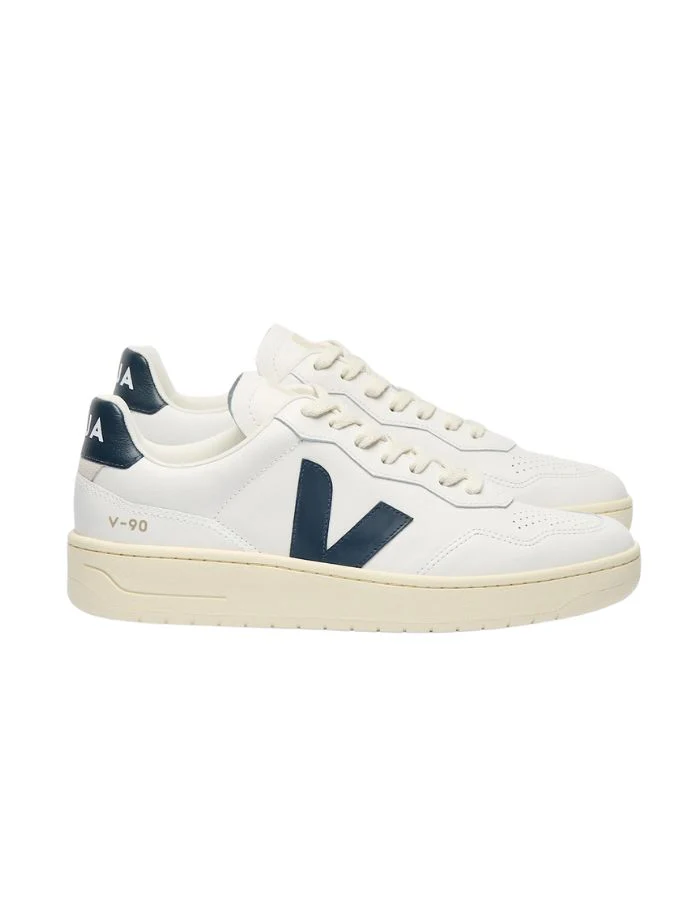 veja v-90 leather white nautico, baskets cuir éco-responsable, veja cuir organic traced, chaussures vegan veja, baskets Veja blanches homme femme, sneakers Veja durables, chaussures écologiques Veja