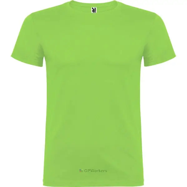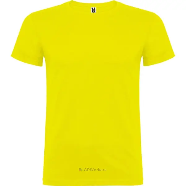 T-shirt manches courtes. Col rond double épaisseur avec élasthanne et bande de propreté épaule à épaule. Coupe tubulaire en tailles adulte et avec coutures latérales en tailles enfant.