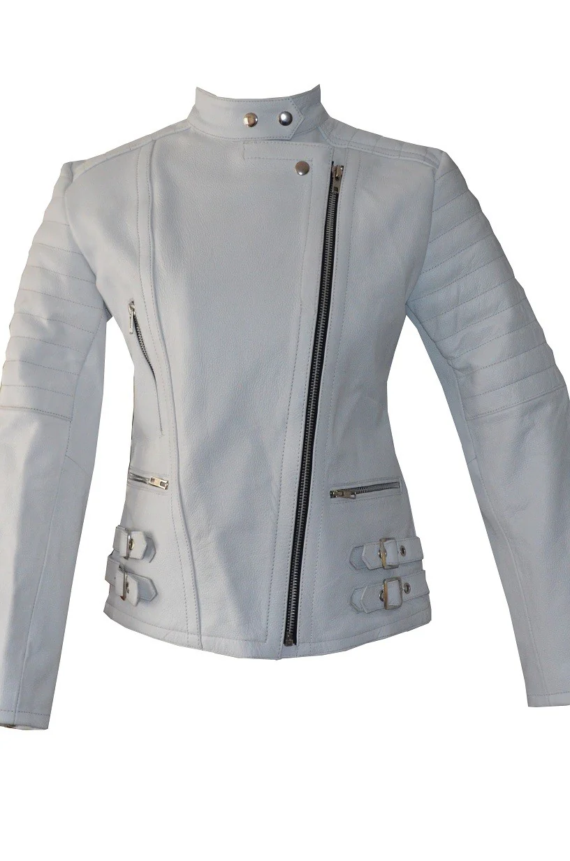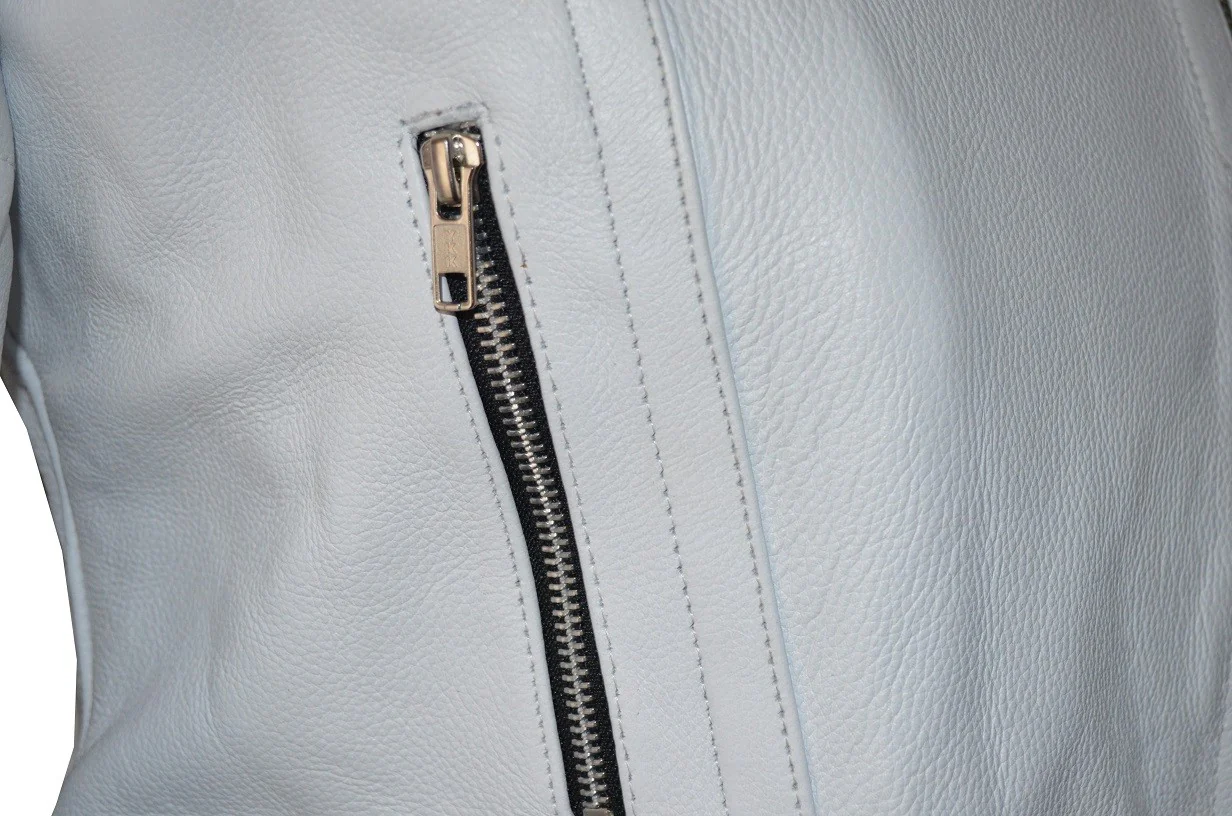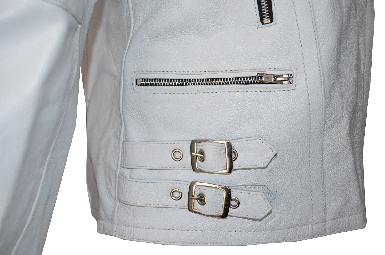 Ce blouson moto pour femme est le choix parfait pour les amateurs de style perfecto. Fabriqué en cuir blanc de qualité, il offre un look élégant et intemporel. Avec sa coupe ajustée et ses détails de style moto, il assure confort, protection et attitude. Un must-have pour les fans de moto et de mode.