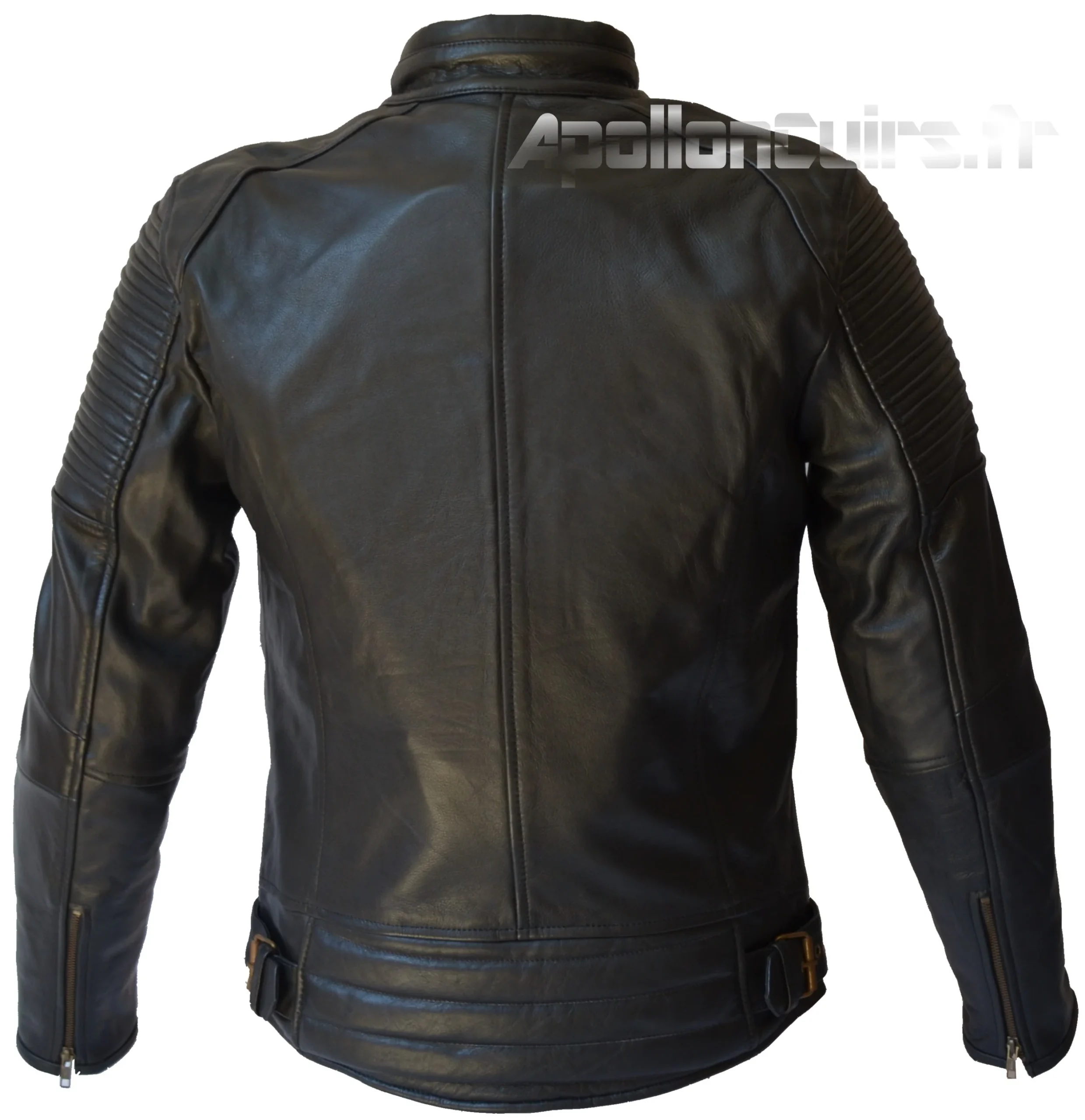 Blouson Moto Rétro Vintage Homme en Cuir Noir