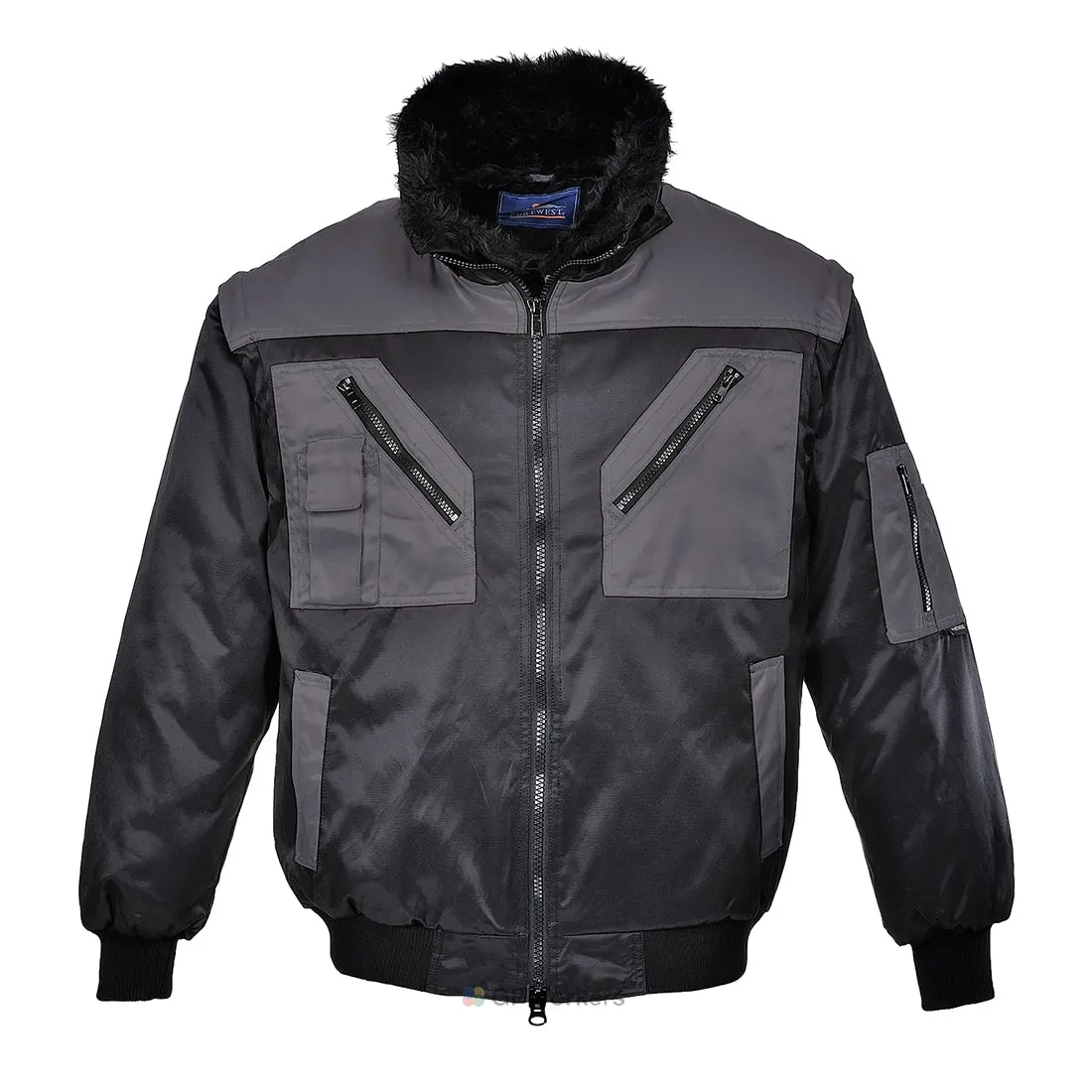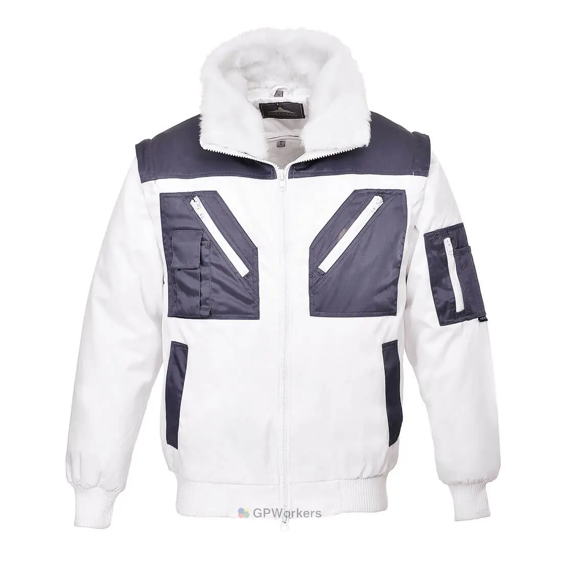 Ce blouson contemporain bicolore est élégant et pratique. Ses principales caractéristiques : manches amovibles, poches multiples sécurisés, doublure et col en fourrure amovible. La toile étanche extérieure permet de le porter par tous les temps.