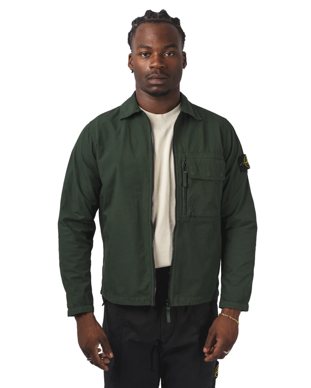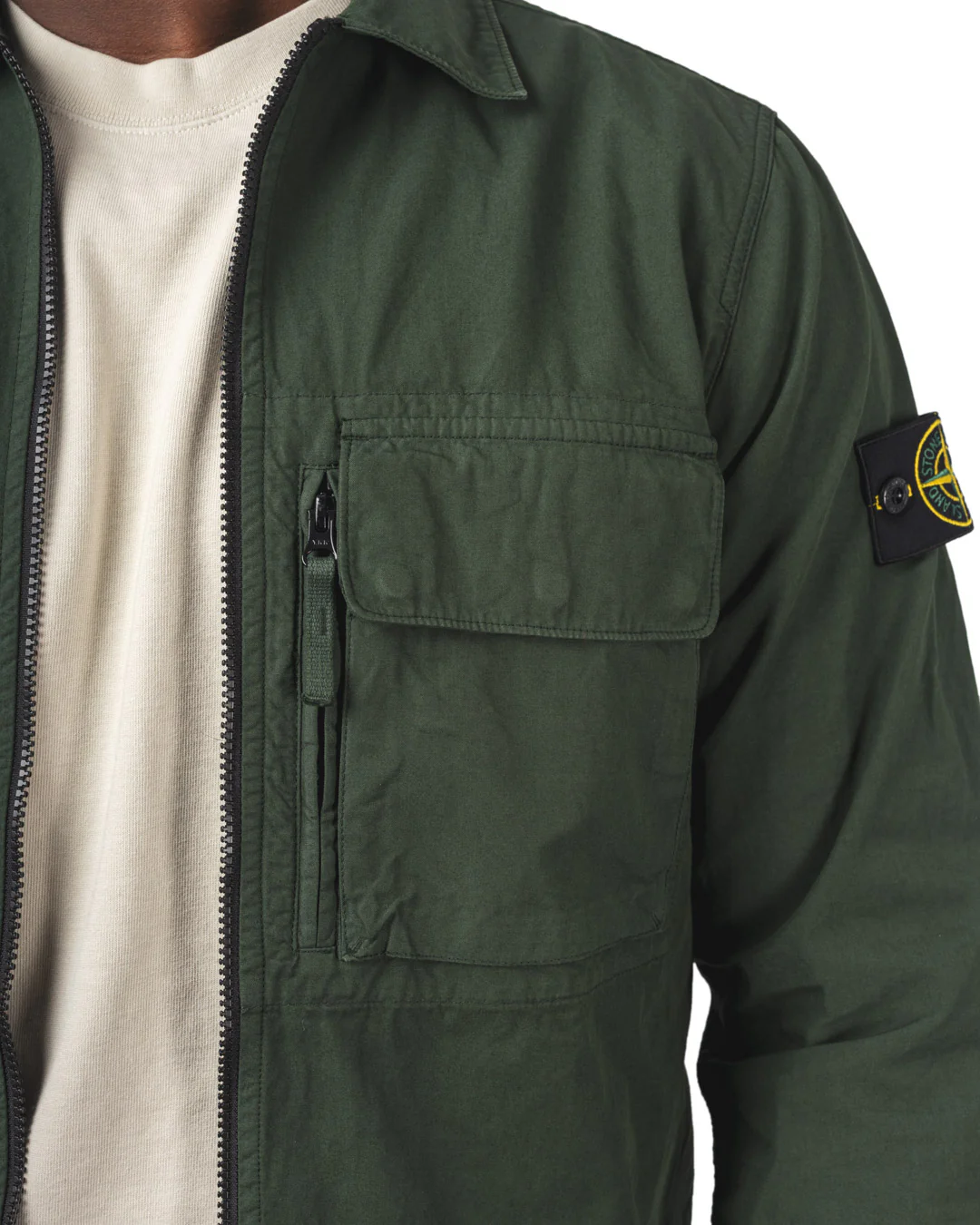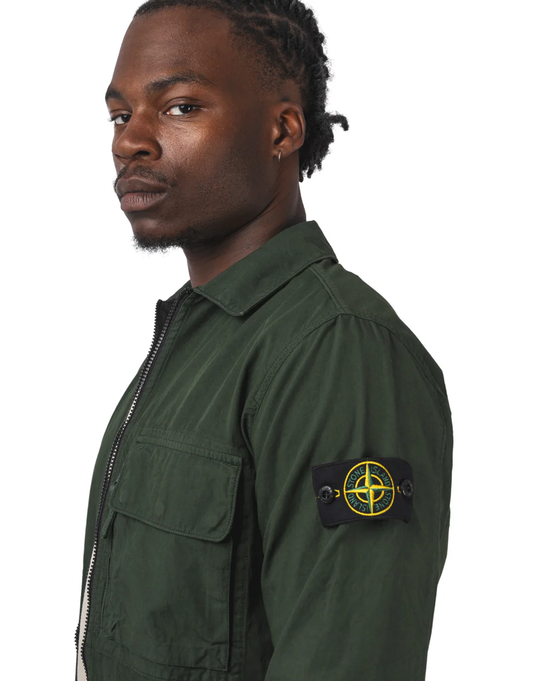 La Canvas Weave Cotton Overshirt s’inscrit dans cet héritage avec une structure hybride entre chemise et veste légère. Confectionnée en toile de coton tissée façon canvas, elle offre une texture dense et résistante, tout en conservant un tombé souple. Elle est teinte en pièce, procédé signature de Stone Island, pour un rendu de couleur profond et unique. Elle se distingue par ses poches poitrine à rabat, sa fermeture zippée frontale et son badge amovible iconique sur la manche.