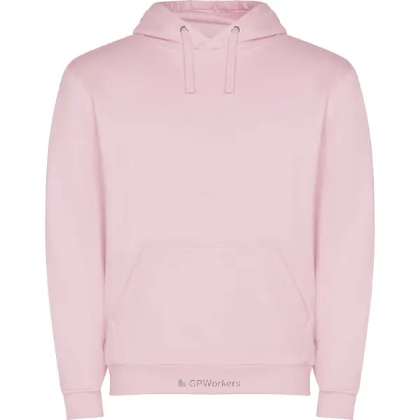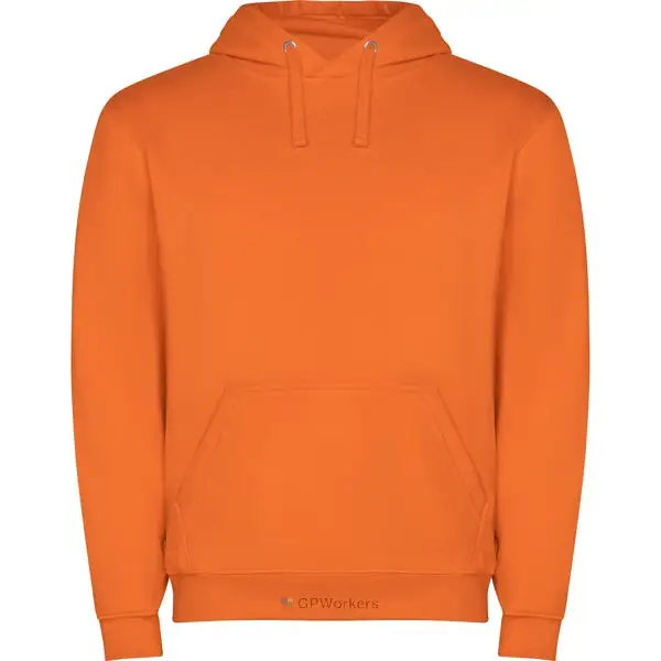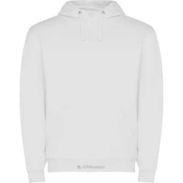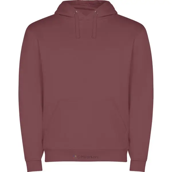 Sweat-shirt capuche avec poche kangourou et cordon de serrage. Poignets et ceinture avec élasthanne en côte 1×1. Modèle enfant sans cordon de serrage.