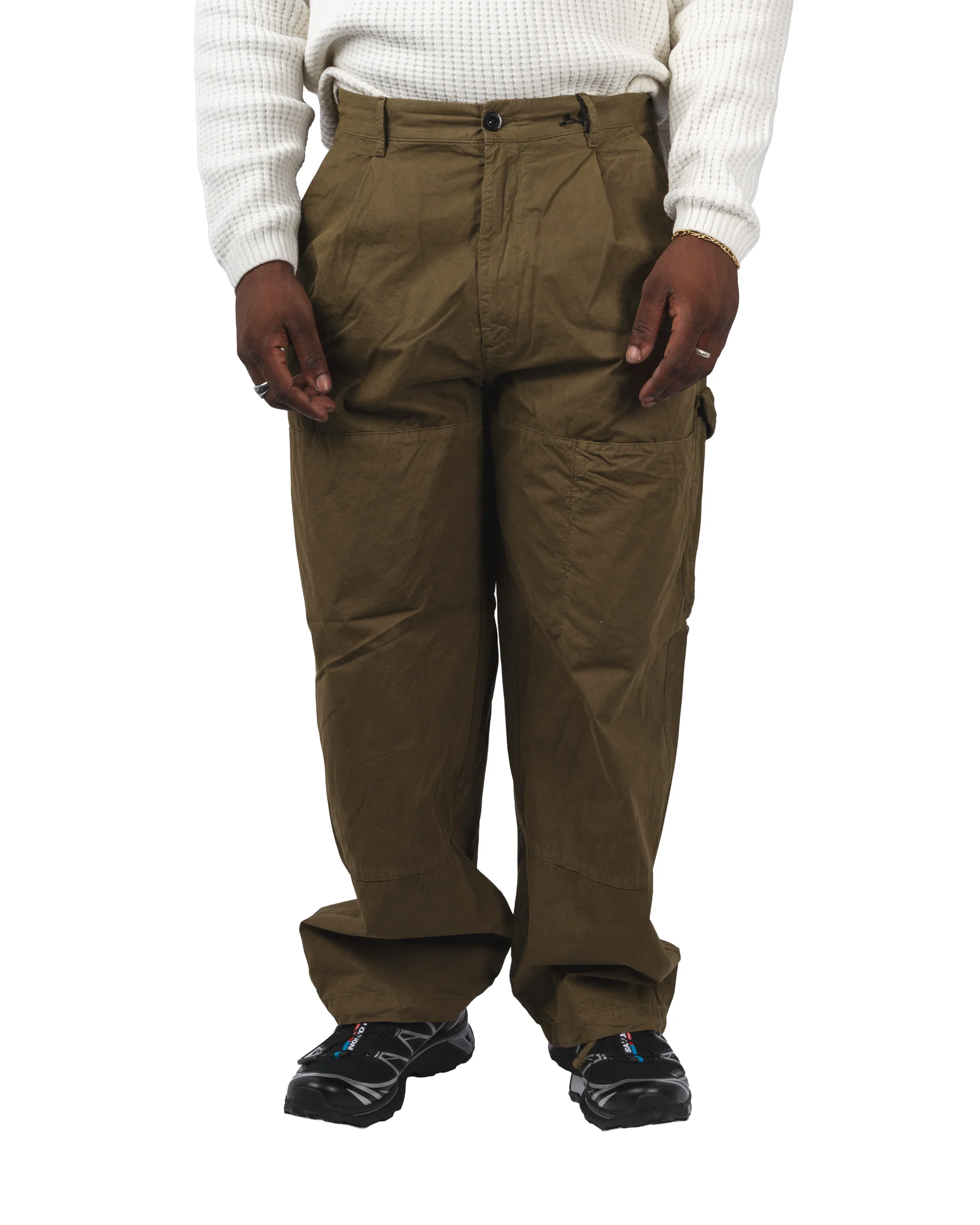 Le Cargo Pant in Microreps Peached est confectionné en microreps de coton et nylon, un tissu dense à effet peached (légèrement brossé) offrant douceur, résistance et protection contre le vent. Sa coupe cargo se distingue par ses poches latérales fonctionnelles, renforçant son esprit utilitaire. Les finitions soignées et la teinture en pièce, signature de la maison, confèrent à chaque pantalon des nuances uniques et profondes.