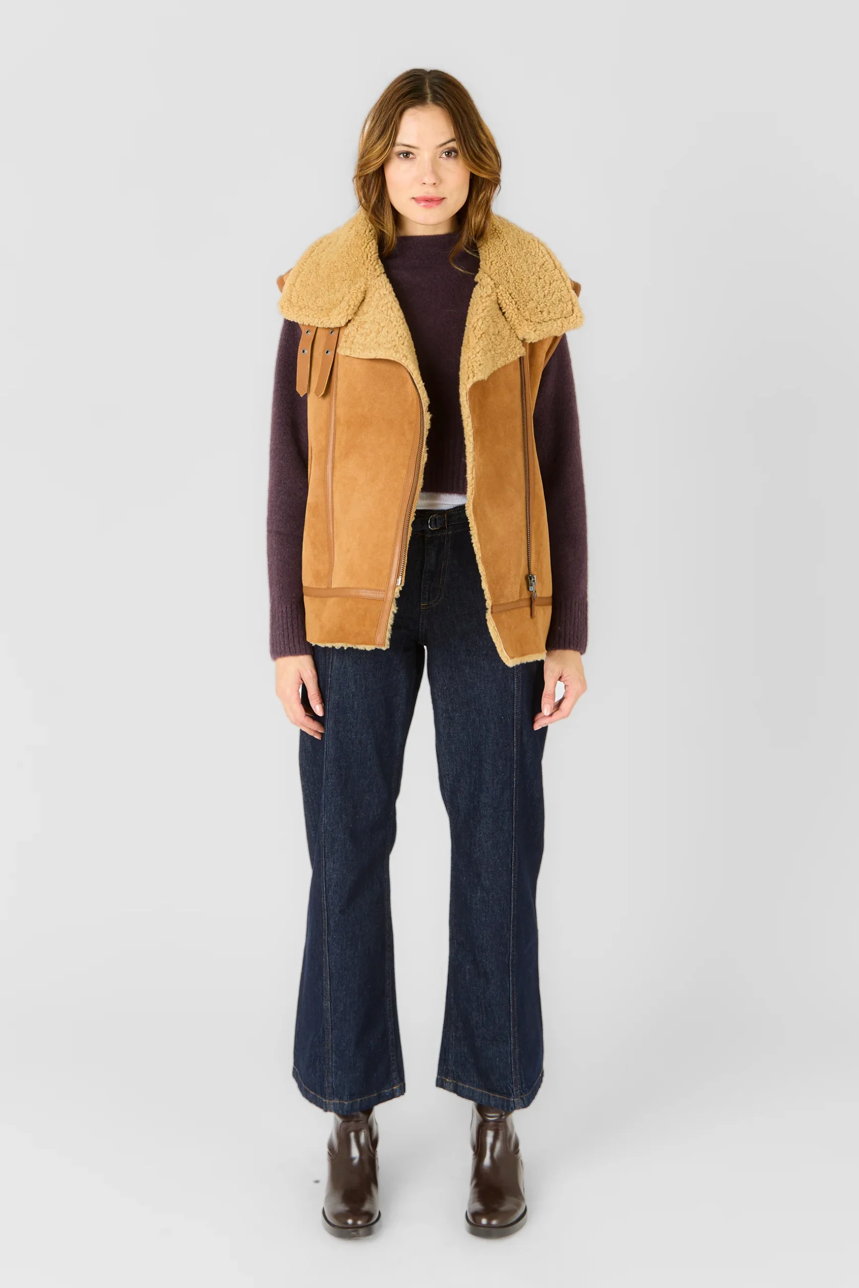 Le Christelle Gilet Tobacco incarne à la perfection l’alliance de la sophistication et du confort. Réalisé en peau lainée de haute qualité, ce gilet sans manches se distingue par sa teinte tabac chaude et naturelle, lui conférant un look authentique et intemporel. Sa coupe oversize offre une silhouette moderne et décontractée, idéale pour superposer sur un pull ou un chemisier.