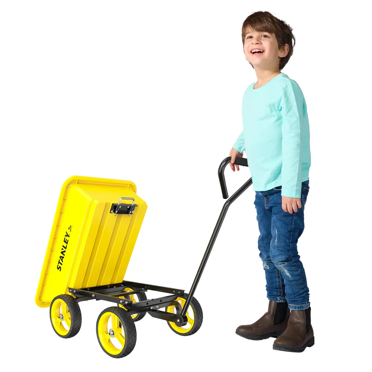 Le chariot Stanley Jr. est un ensemble tout-en-un pour les jeunes passionnés de jardinage. Sa structure métallique assure une longue durée de vie. Il est doté d’une poignée métallique qui se déplace vers l’avant, l’arrière, le haut et le bas, facilitant ainsi les manœuvres. La poignée se range également sous le bac pour un rangement facile. Une poignée secondaire, située sous le bac, permet aux enfants de l’incliner et de le vider sans effort. Équipé de roues en PU, le chariot est pratique pour de nombreuses aventures en plein air. L’ensemble comprend également un râteau droit, une houe, un grand seau, une truelle et une fourche à main, offrant ainsi aux enfants tout le nécessaire pour des activités de plein air amusantes et éducatives. Cet ensemble encourage les enfants à apprendre le jardinage, l’entretien extérieur et le sens des responsabilités de manière ludique et interactive. Les outils sont conçus pour les enfants, faciles à manipuler et sûrs pour les petites mains.