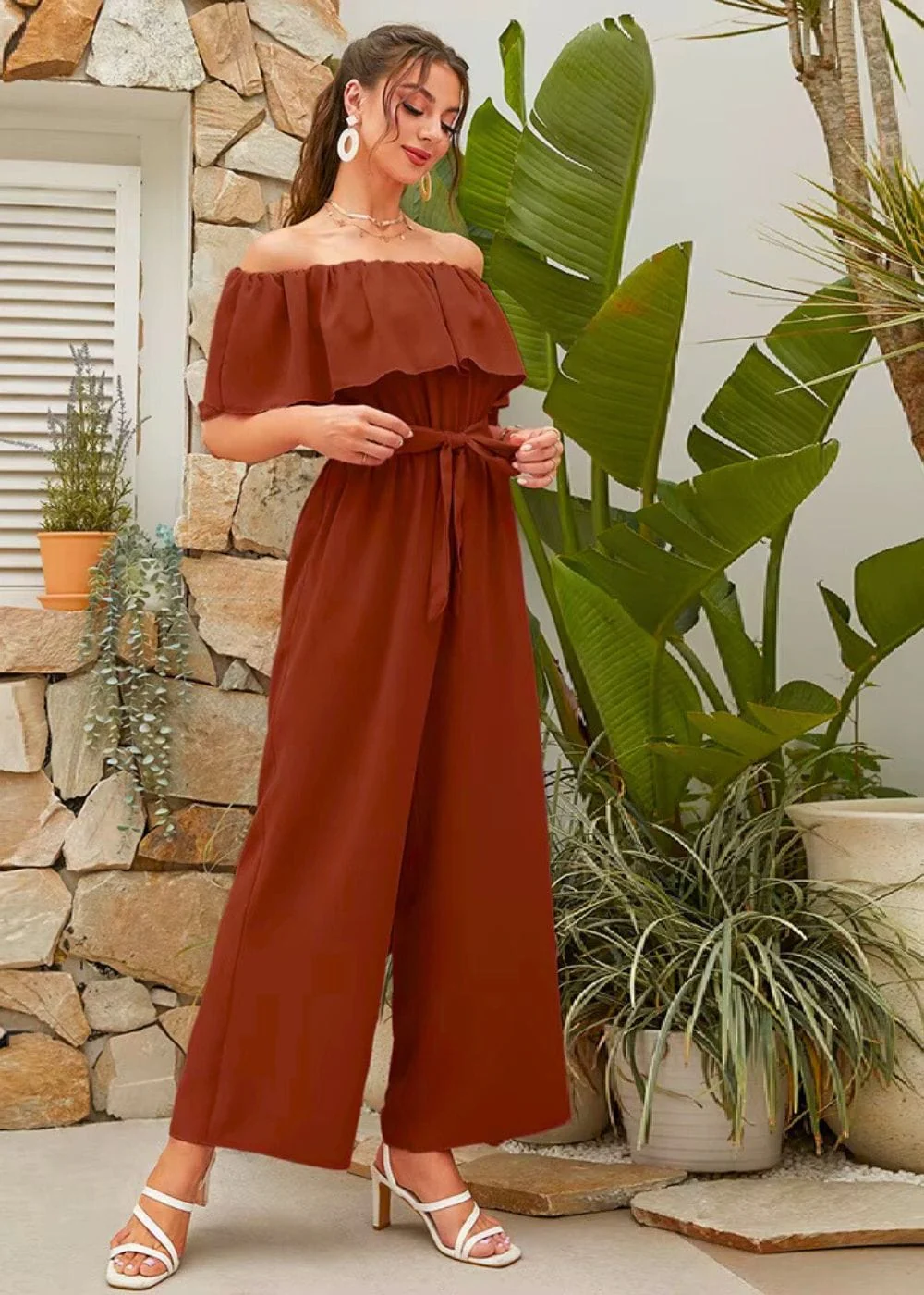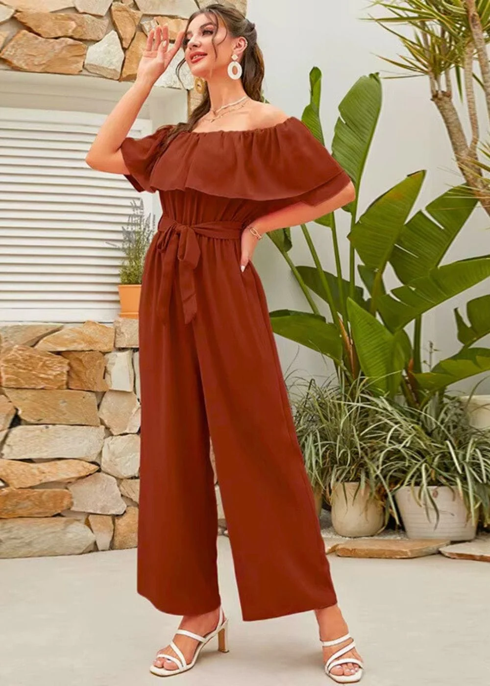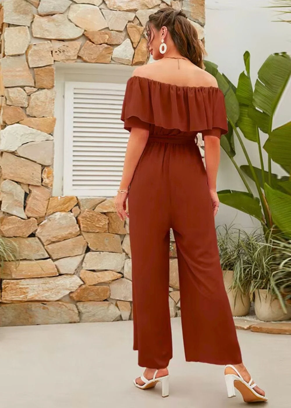 Cette combinaison se distingue par son décolleté bardot, parfait pour sublimer tes épaules et donner un petit air bohème-chic à ta tenue. Les manches courtes et évasées ajoutent une touche d’originalité et de confort, idéales pour les journées chaudes de l’été. Associe-la avec des sandales et des bijoux dorés pour un look estival complet et raffiné.