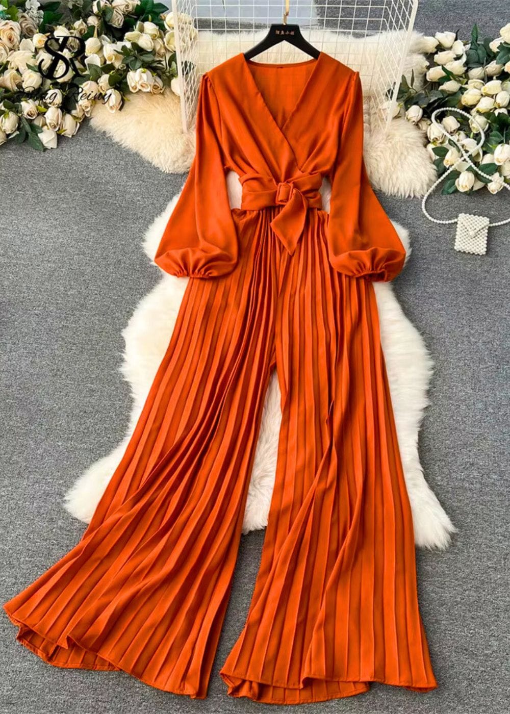 Élégance décontractée : la combinaison plissée terracotta fait sensation