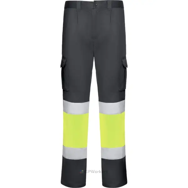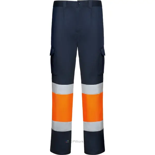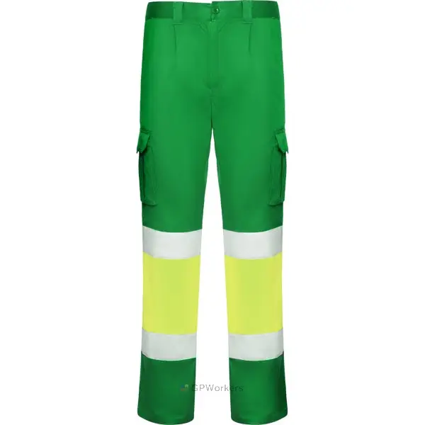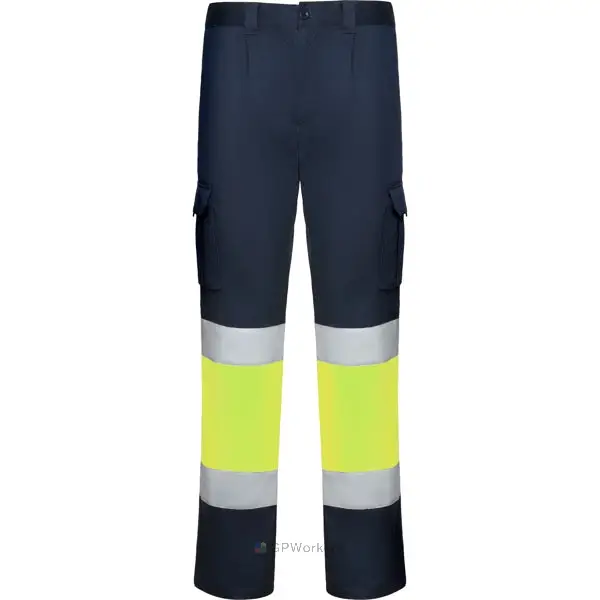 Pantalon multi-poches haute visibilité.· Tissu confortable et souple.· Taille élastiquée ajustable à l’arrière.· Deux poches avant.· Deux poches arrière avec rabat et fermeture velcro.· Deux poches latérales à soufflet avec rabat et fermeture velcro.· Combinés en deux couleurs et bandes réfléchissantes.