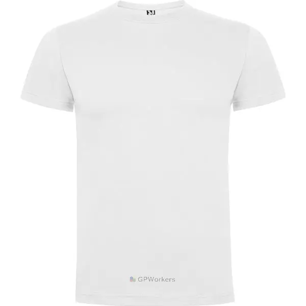 T-shirt manches courtes. Col rond quadruple épaisseur et bande de propreté pour encolure et épaules. Coutures latérales.
