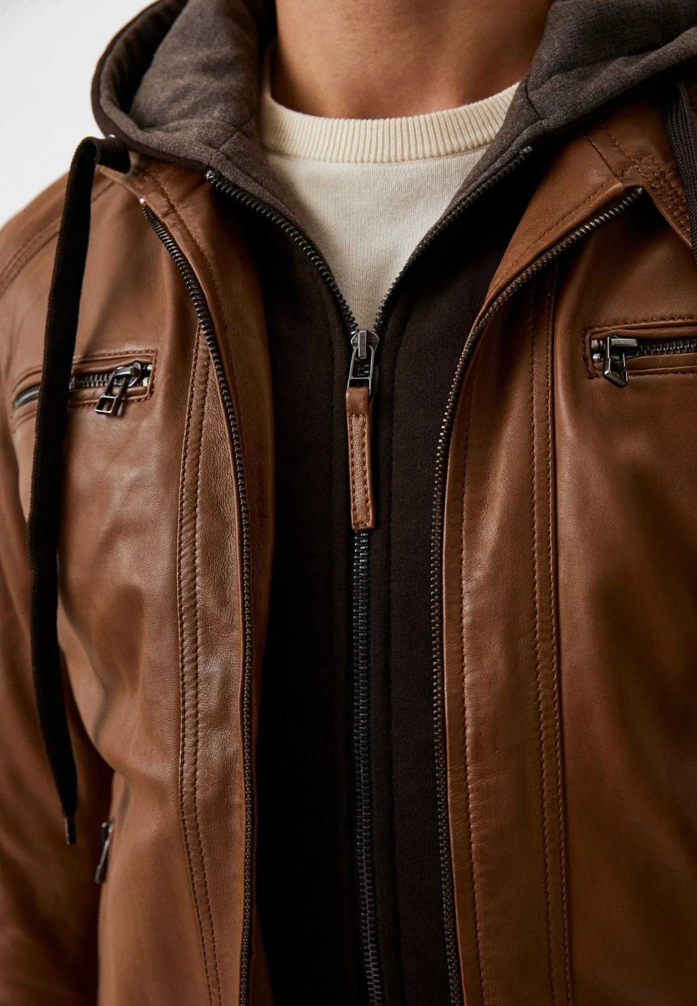 L’ICONIC de nos blousons col motard en cuir de mouton à capuche amovible.