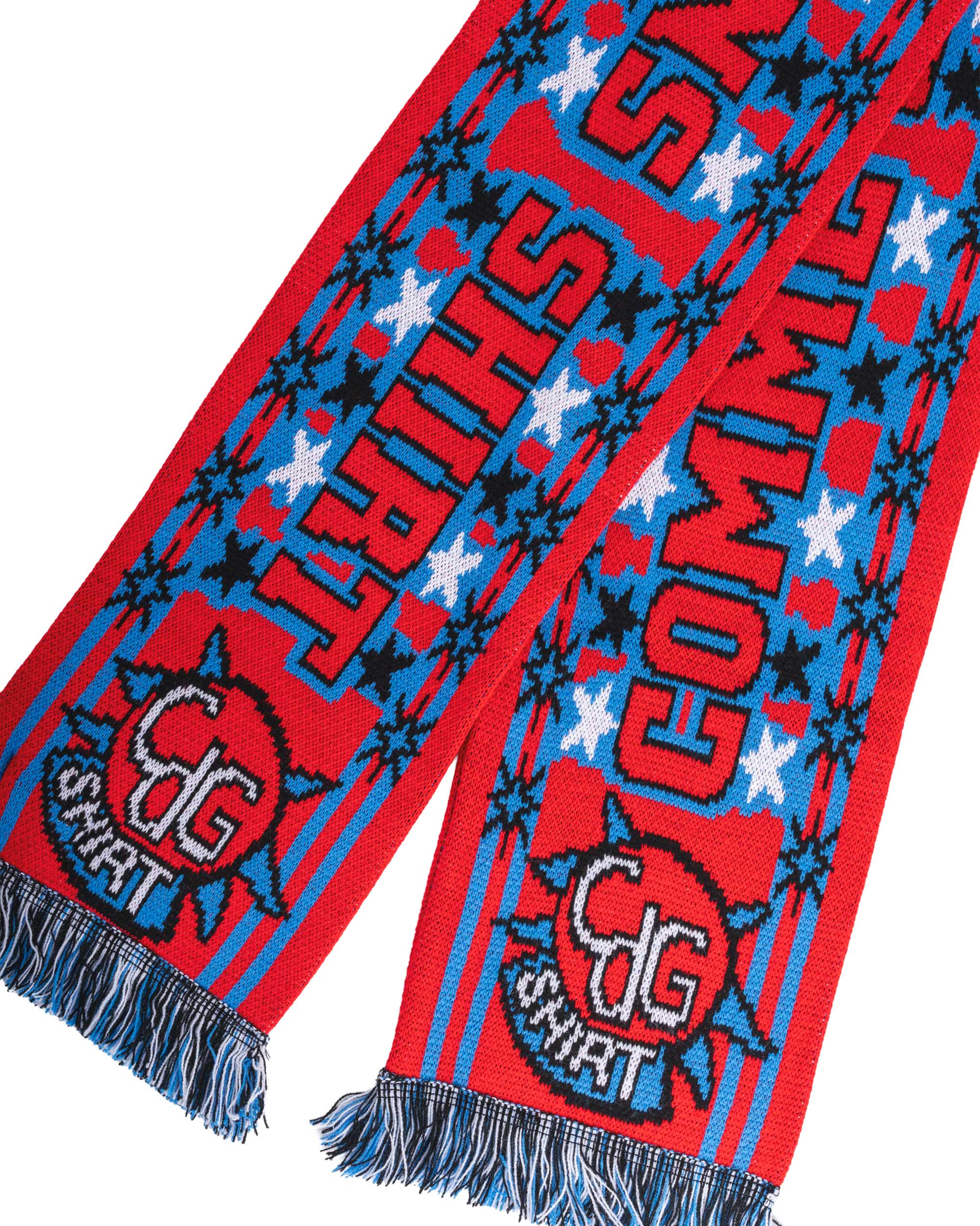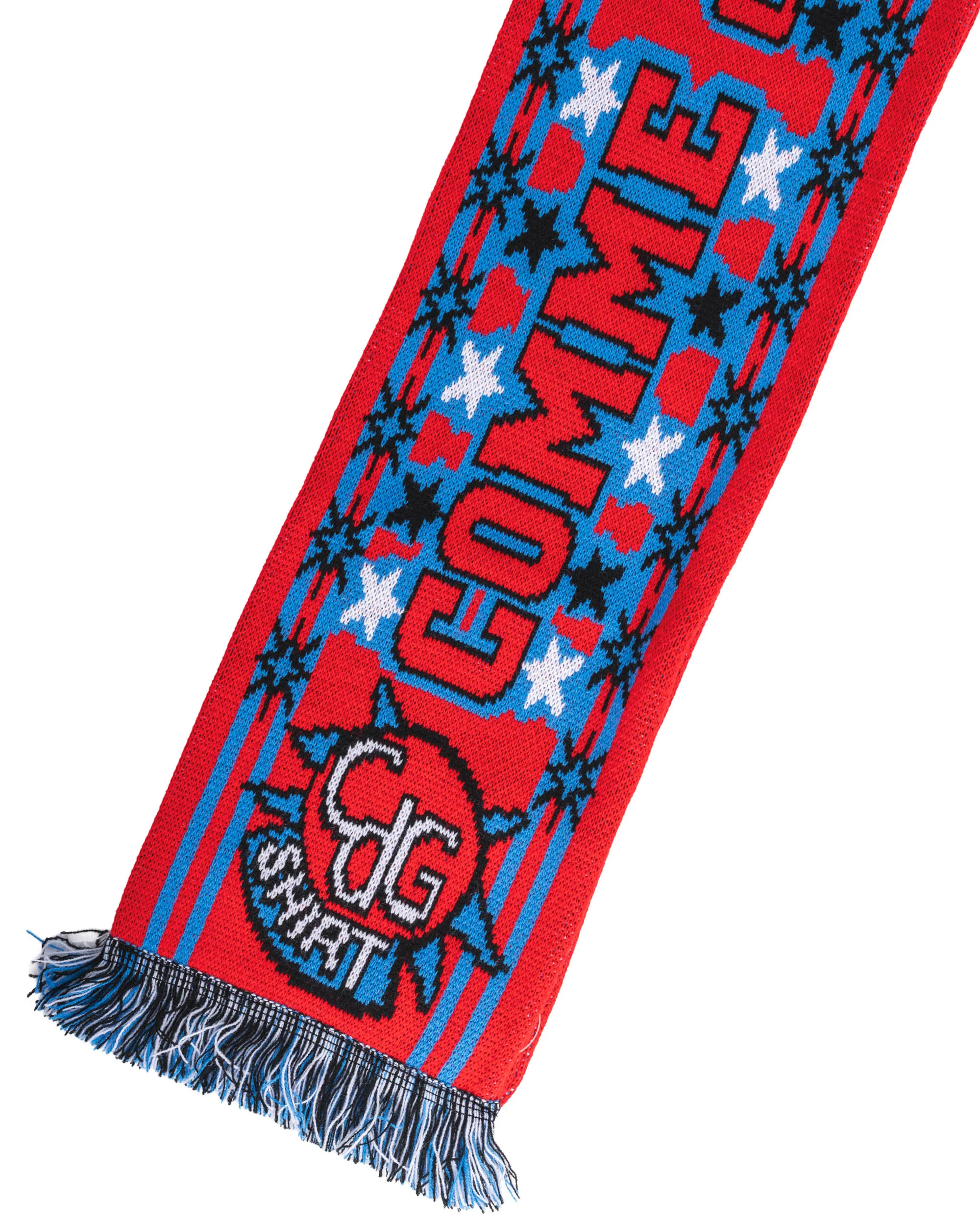 Le Football Scarf illustre cet ADN en revisitant l’écharpe sportive dans une version contemporaine. Confectionnée en maille douce et chaude, elle se distingue par ses couleurs contrastées et ses motifs inspirés de l’univers footballistique. Longue et confortable, elle apporte à la fois chaleur et une touche graphique audacieuse.