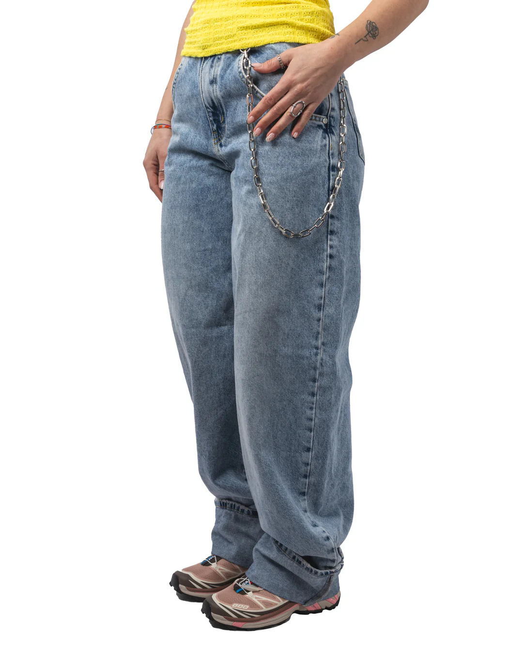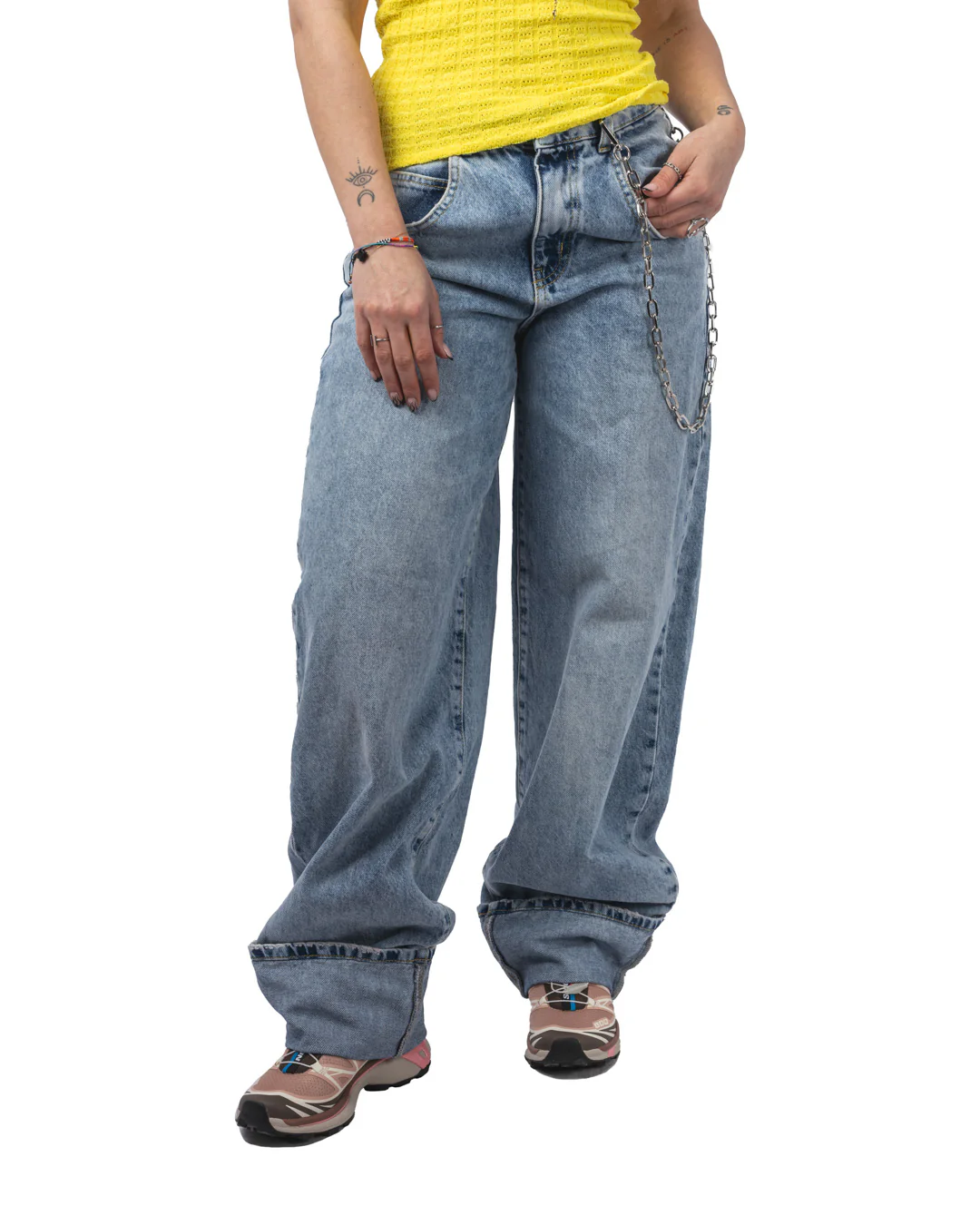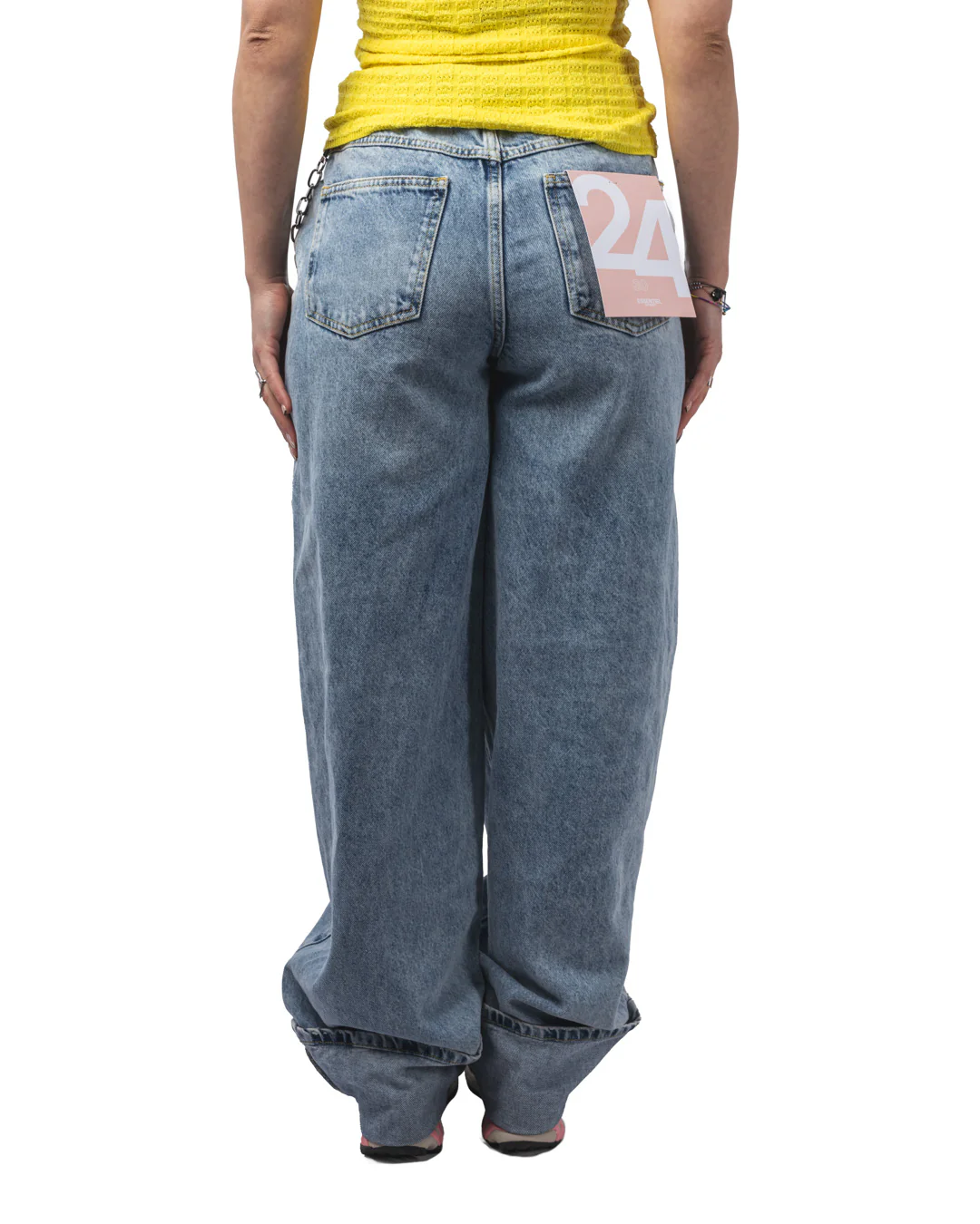 Le jean Huge Barrel Leg incarne parfaitement l’esthétique innovante de la marque. Confectionné en 100% coton, il présente une coupe ample avec des jambes larges et droites, offrant une silhouette décontractée et tendance. Les détails incluent des passants de ceinture, une fermeture boutonnée avec braguette zippée dissimulée, une longueur cheville, des surpiqûres apparentes et un style à cinq poches.
