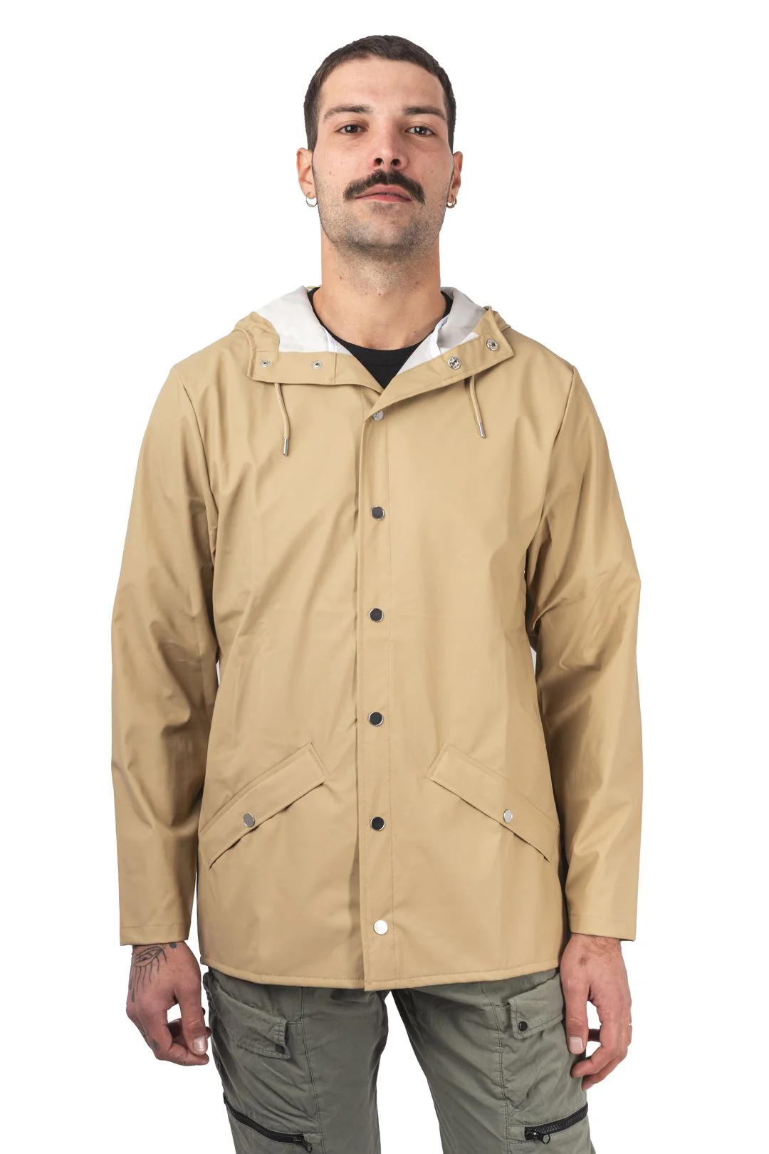 Détails Patte avec fermeture à bouton-pression Capuche avec cordon de serrage et casquette à visière Poignets pressionnés ajustables Empiècement arrière avec aérations invisibles Deux poches latérales pressionnées Œillets au niveau des aisselles Coutures soudées par ultrasons Base en queue de poisson Matières : Composition du tissu : 100 % polyester avec un revêtement en polyuréthane […]