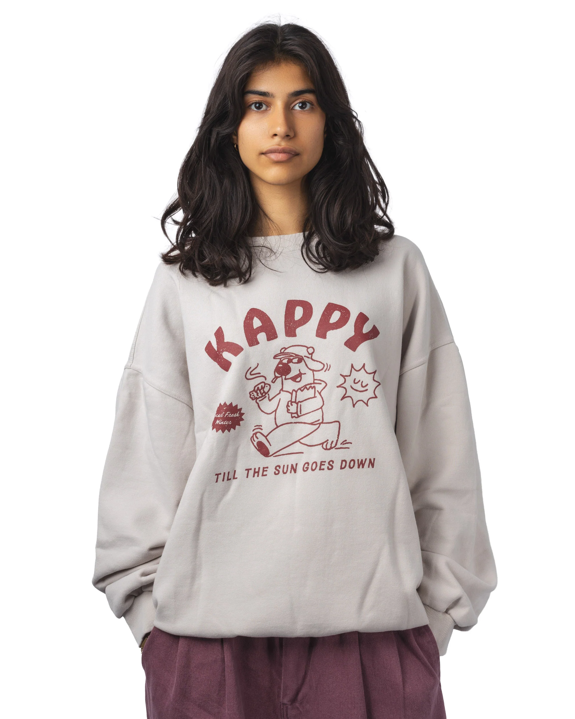 Le Kappy Bear Fluff Sweatshirt illustre cette approche avec une matière polaire douce et moelleuse qui assure chaleur et confort. Sa coupe ample et unisexe s’inscrit dans la volonté d’offrir une silhouette adaptable, tandis que le motif signature « Kappy Bear » apporte une note ludique et distinctive. Les finitions soignées et la texture du tissu en font une pièce aussi agréable à porter qu’à regarder.