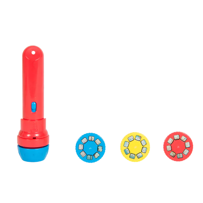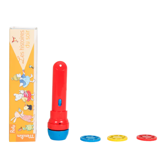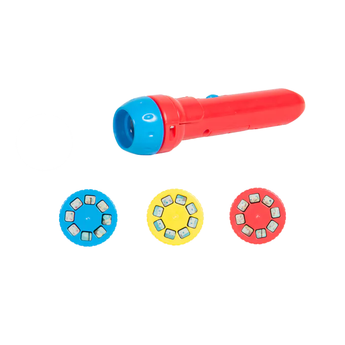 Cette lampe torche de poche projette 3 disques sur le mur pour raconter une histoire.