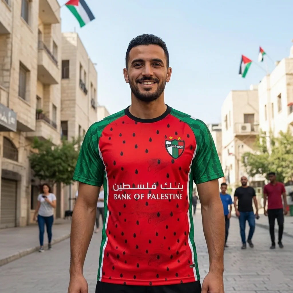 Affichez fièrement votre soutien à la Palestine avec ce Maillot Palestine Rouge, un vêtement sportif et symbolique inspiré des couleurs, de l’identité et de la résistance palestinienne. Son design unique mêle le rouge intense de la pastèque 🍉, le vert du drapeau palestinien et des détails graphiques forts qui incarnent l’attachement à la terre palestinienne.