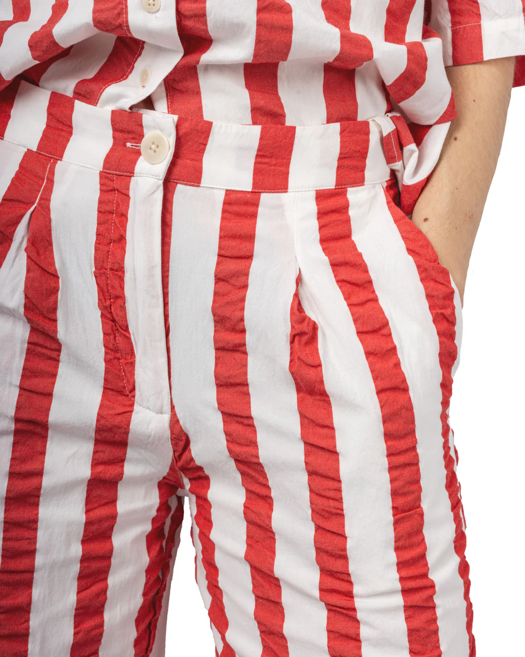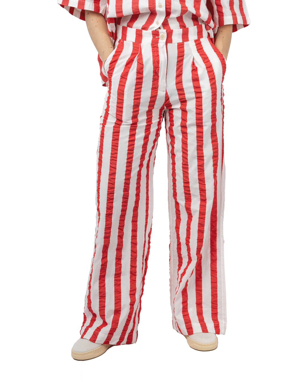 Polyvalent et intemporel, le pantalon Manolita s’associe aisément avec divers hauts pour créer des looks décontractés ou plus habillés, reflétant l’esthétique responsable de Thinking Mu.