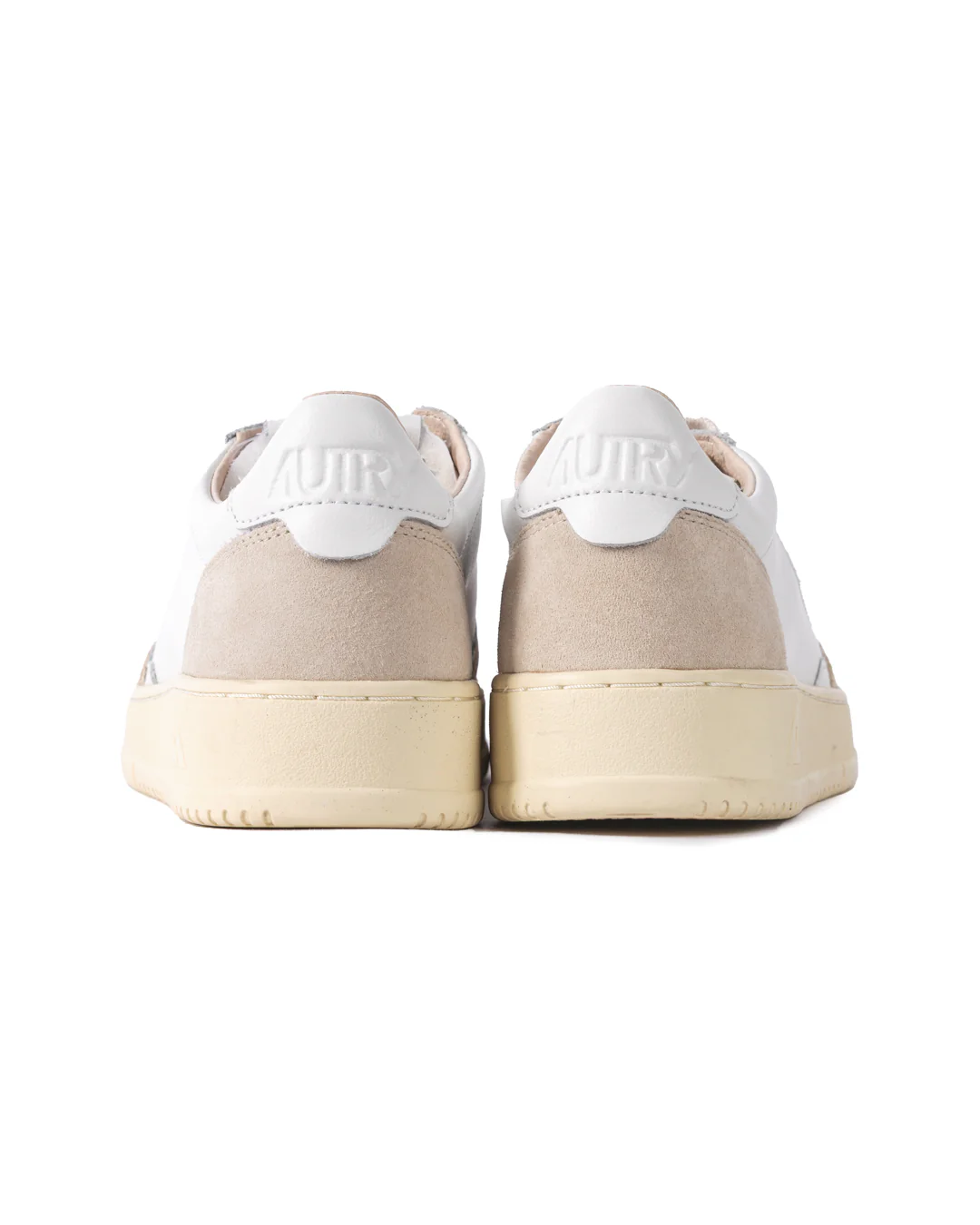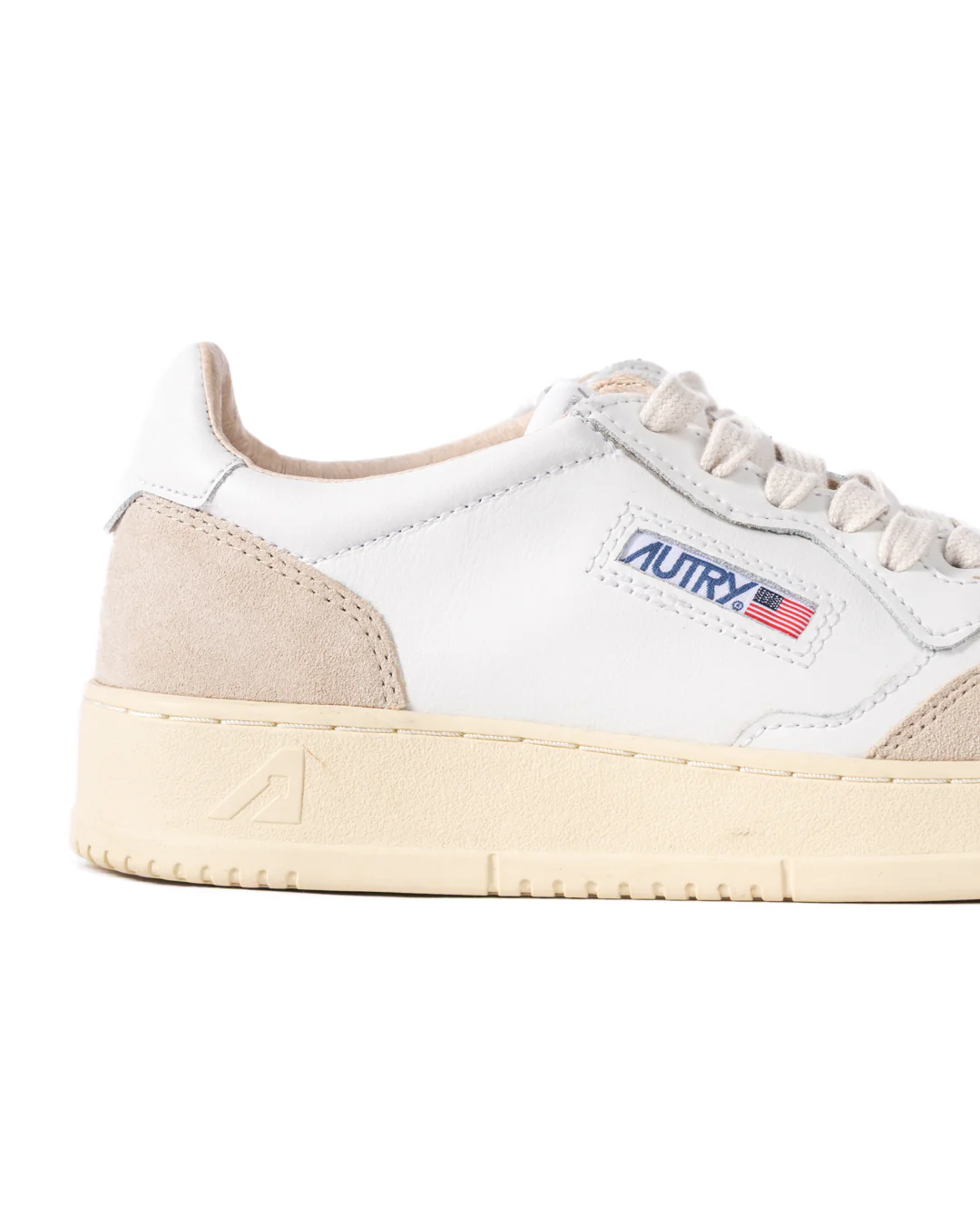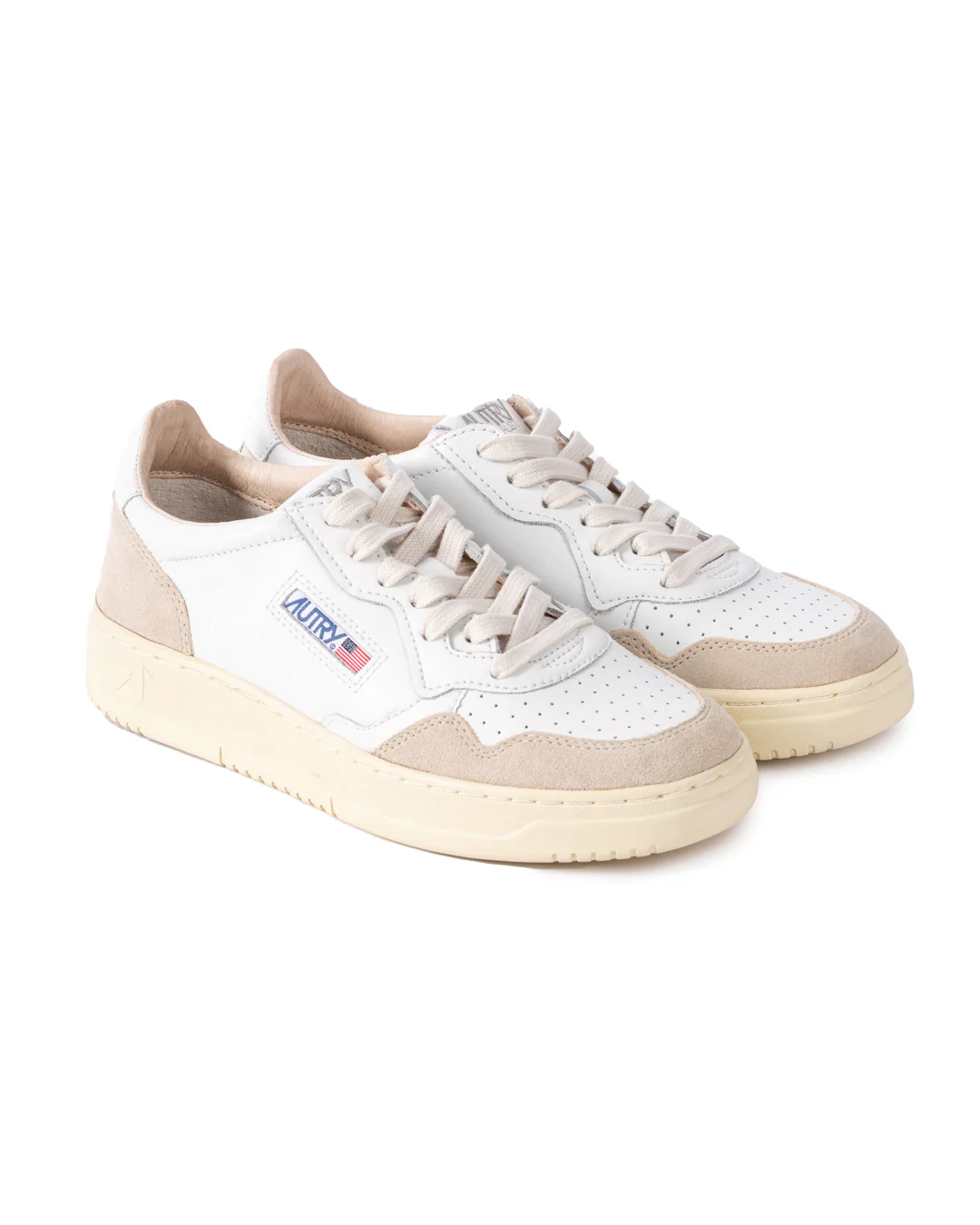 La Medalist Low Leather Suede décline l’iconique Medalist dans une version mêlant cuir lisse et empiècements en suède, pour un jeu de textures raffiné et une touche vintage marquée. Sa coupe basse rétro est montée sur une semelle en caoutchouc légèrement patinée, évoquant l’usure naturelle des baskets d’époque. Elle intègre une doublure en cuir et coton-éponge, assurant confort et respirabilité. Le logo Autry et le drapeau américain brodé sur le côté viennent rappeler les racines authentiques de la marque.