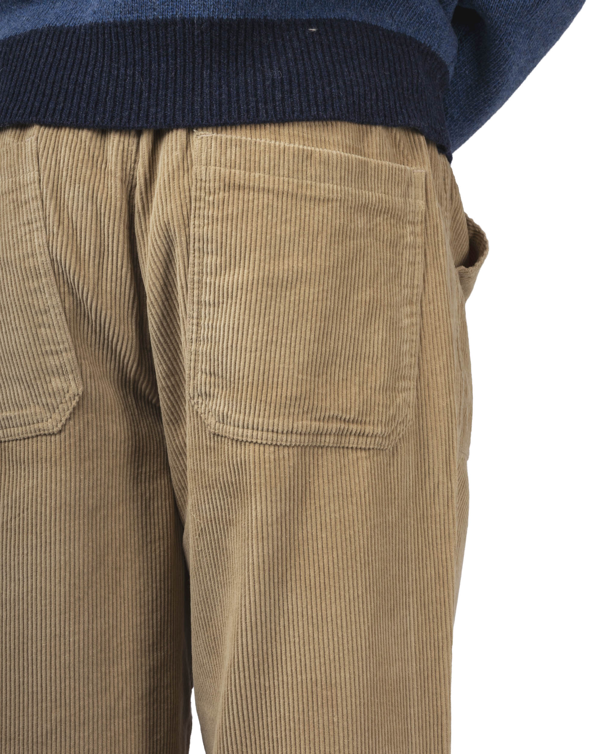 Le One Tuck Fatigue Corduroy Pants traduit cette philosophie à travers un design utilitaire et une matière chaleureuse. Confectionné en velours côtelé de qualité, il associe texture et robustesse. Sa coupe ample avec un pli marqué à la taille (one tuck) assure aisance et volume, tandis que les poches inspirées des pantalons fatigue renforcent son aspect fonctionnel. La taille élastiquée et ajustable ajoute un confort supplémentaire au quotidien.