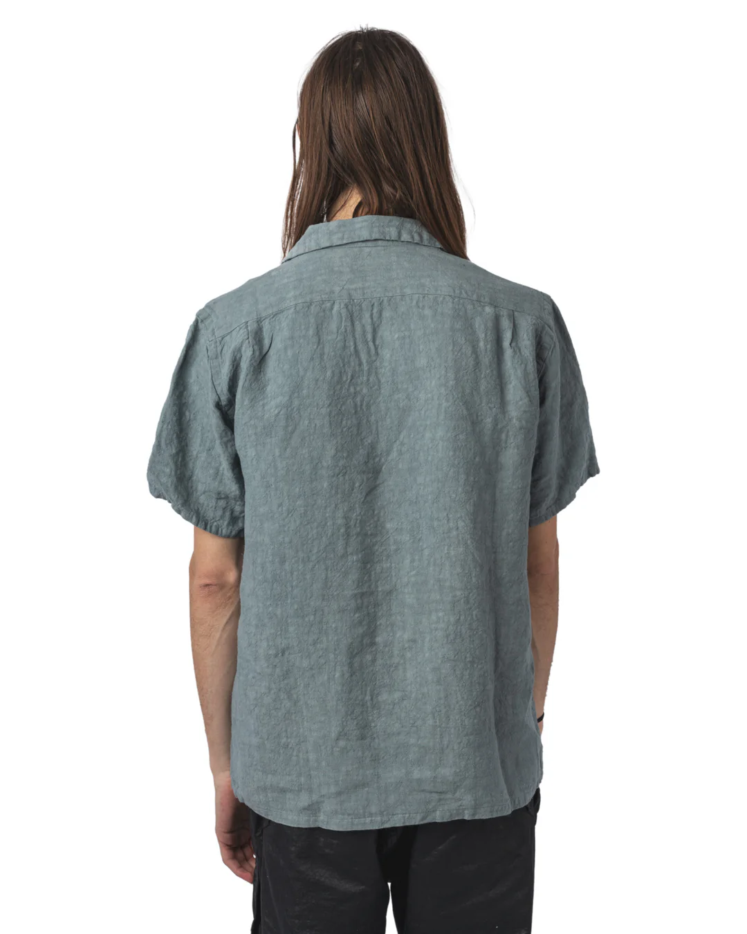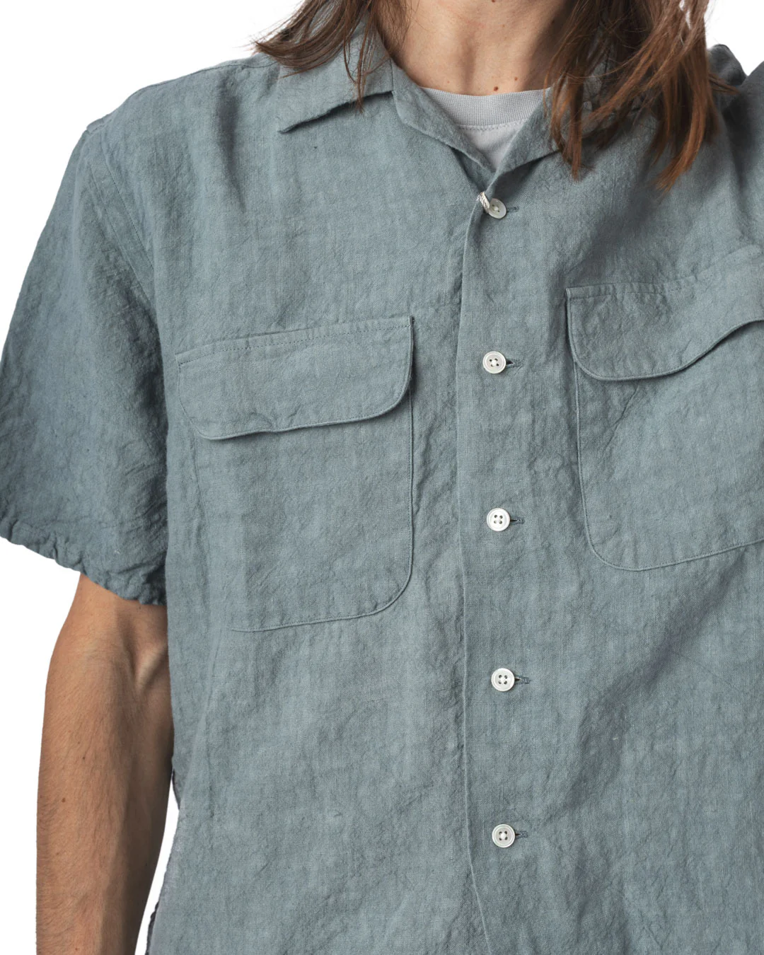 La chemise Open Collar 1/40 Linen incarne cette philosophie. Confectionnée au Japon à partir de lin 100 %, elle offre une texture naturellement irrégulière et une sensation de fraîcheur idéale pour l’été. Son design comprend un col ouvert de style camp, deux poches poitrine à rabat, des plis d’aisance au dos et une coupe droite, alliant fonctionnalité et esthétique inspirée du workwear. Des boutons en résine et un ourlet droit avec fentes latérales complètent cette pièce au charme rétro.