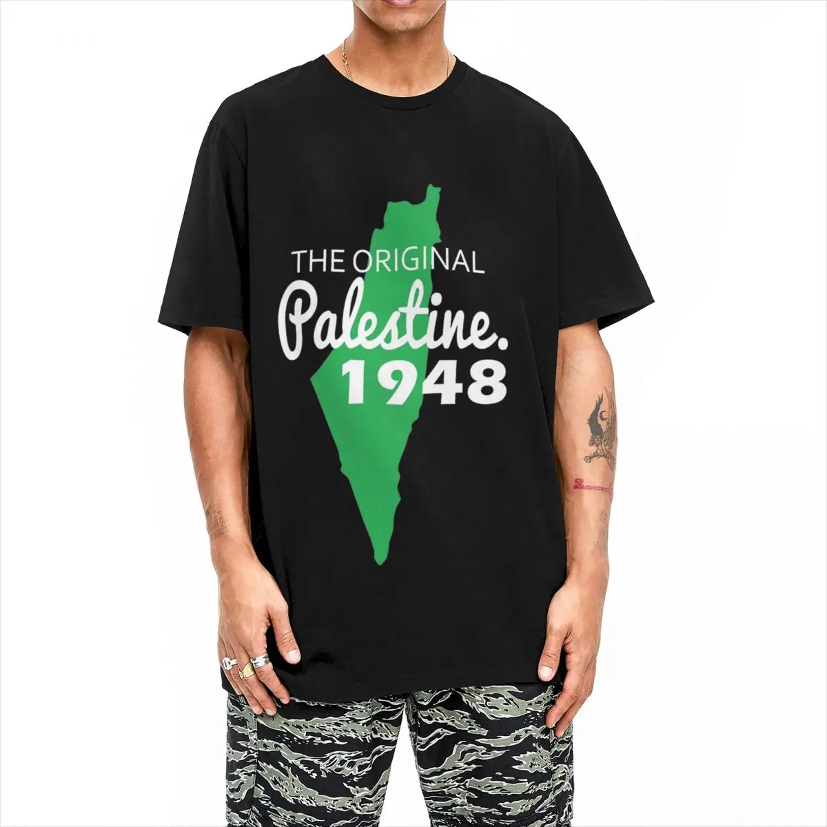 Ce design unique présente la carte de la Palestine avant 1948, accompagnée de la mention « The Original Palestine 1948 ». Il est un hommage à l’histoire et à l’identité palestiniennes, rappelant les frontières et le patrimoine avant la Nakba.