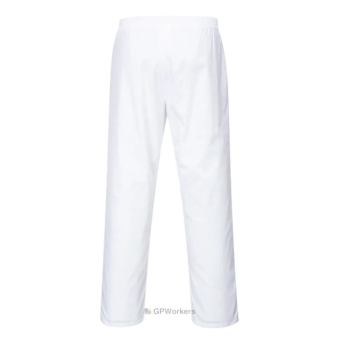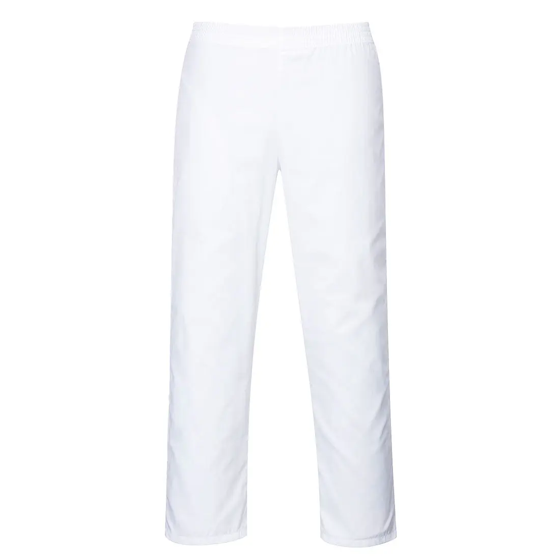 Ce pantalon confortable et léger est doté d’une taille entièrement élastiquée avec cordon de serrage pour plus de confort. Ils sont sûrs pour l’alimentation, sans poches susceptibles de piéger la saleté et les bactéries, et conviennent au lavage industriel.