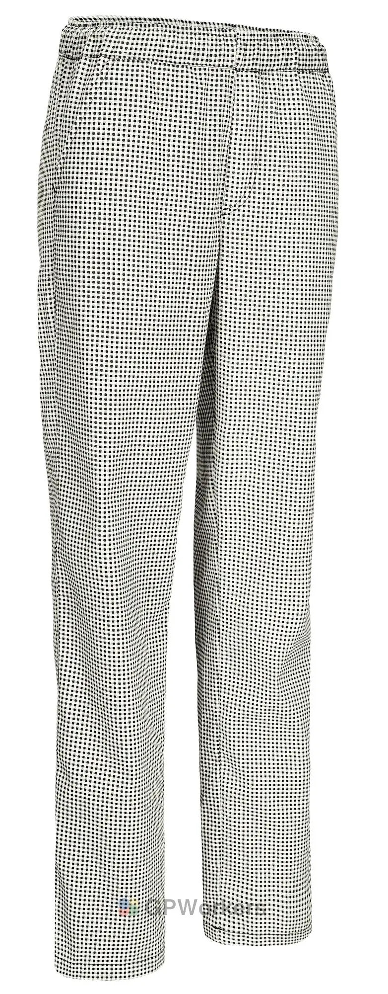 Pantalon de chef au design rayures diplomatiques ou pied de poule.