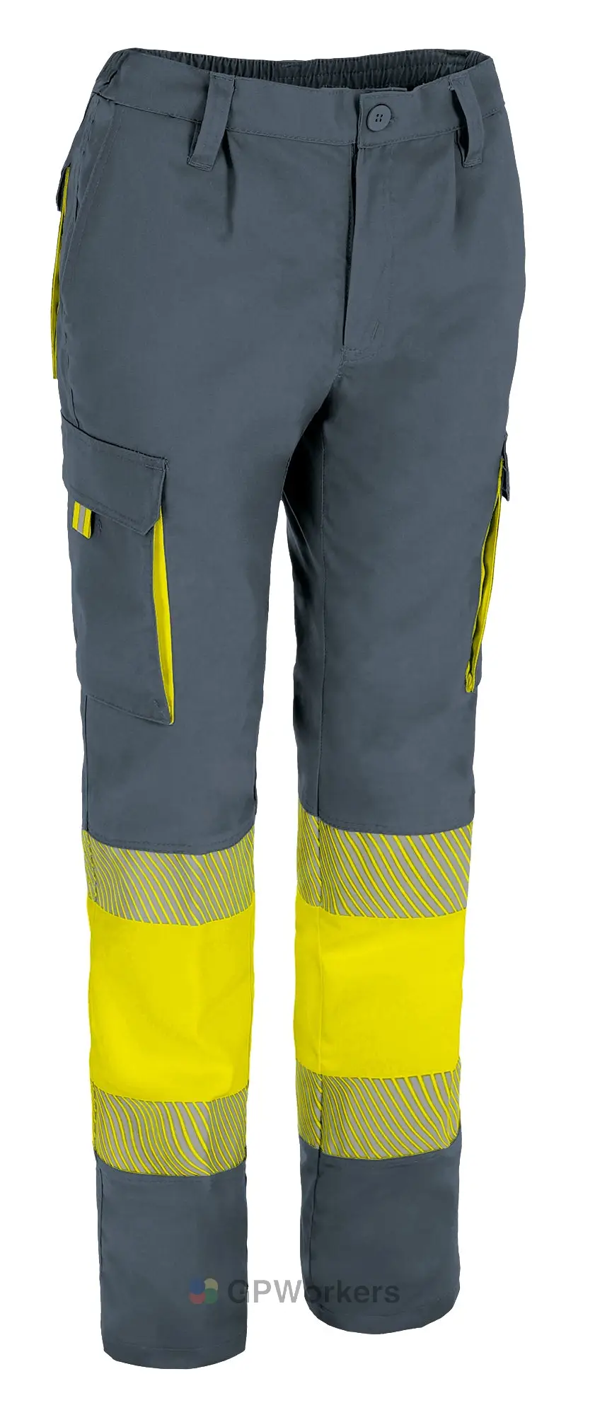 Confectionné en tissu sergé mélange coton avec polyester qui apporte durabilité et résistance, comprend deux bandes rétro-réfléchissantes thermo-fixées segmentées sur les jambes pour plus de sécurité sans perdre la liberté de mouvement.