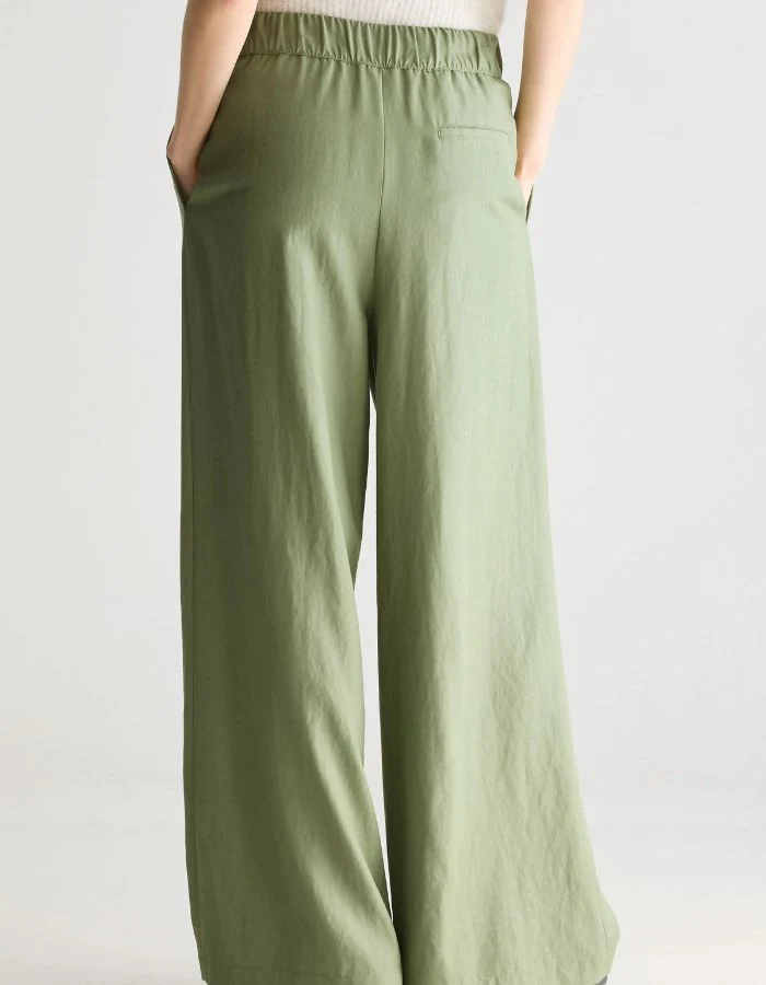 Optez pour un style fluide et raffiné avec le pantalon Vezza Wide Jeep de Bellerose. Sa coupe large et sa taille haute élastiquée offrent un confort absolu tout en sublimant la silhouette. Confectionné dans un mélange de viscose, polyester et coton, il se distingue par sa légèreté et son tombé impeccable.