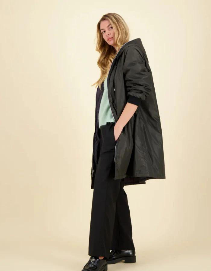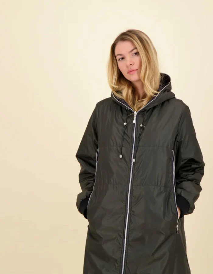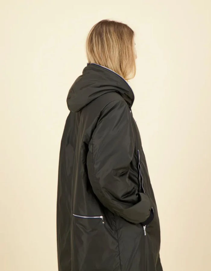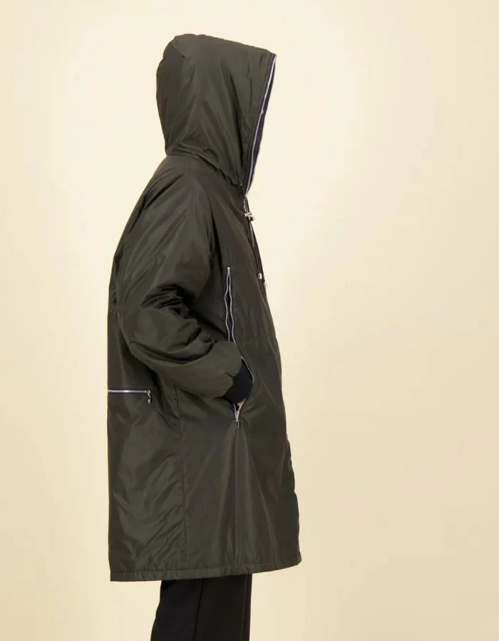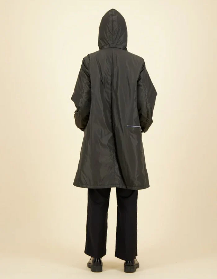 Pensée pour affronter les journées pluvieuses sans compromis sur le style, la parka longue zippée allie technicité et allure contemporaine. Sa coupe droite et allongée (95 cm) protège efficacement tout en élançant la silhouette. Dotée d’une capuche intégrée et d’une matière 100 % polyamide imperméable, elle offre une barrière fiable contre la pluie tout en restant légère à porter. Un essentiel minimaliste et fonctionnel à adopter saison après saison.