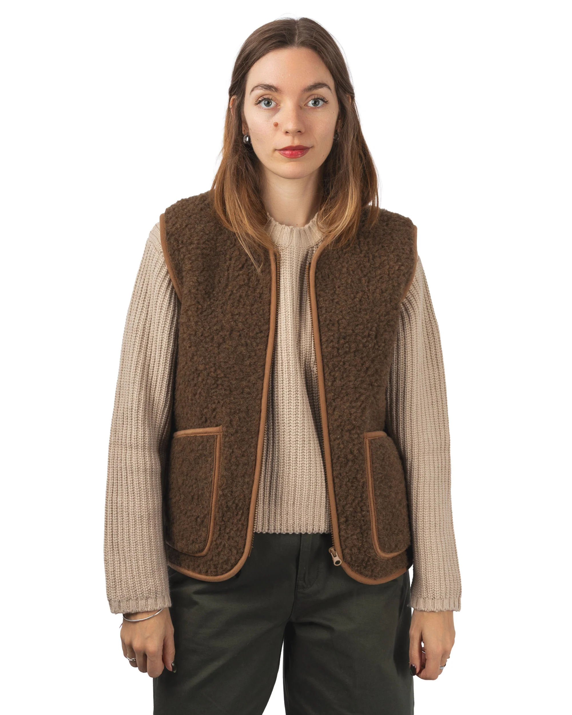 Polyvalent et durable, ce gilet en laine accompagne parfaitement les tenues hivernales, en ville comme en extérieur.