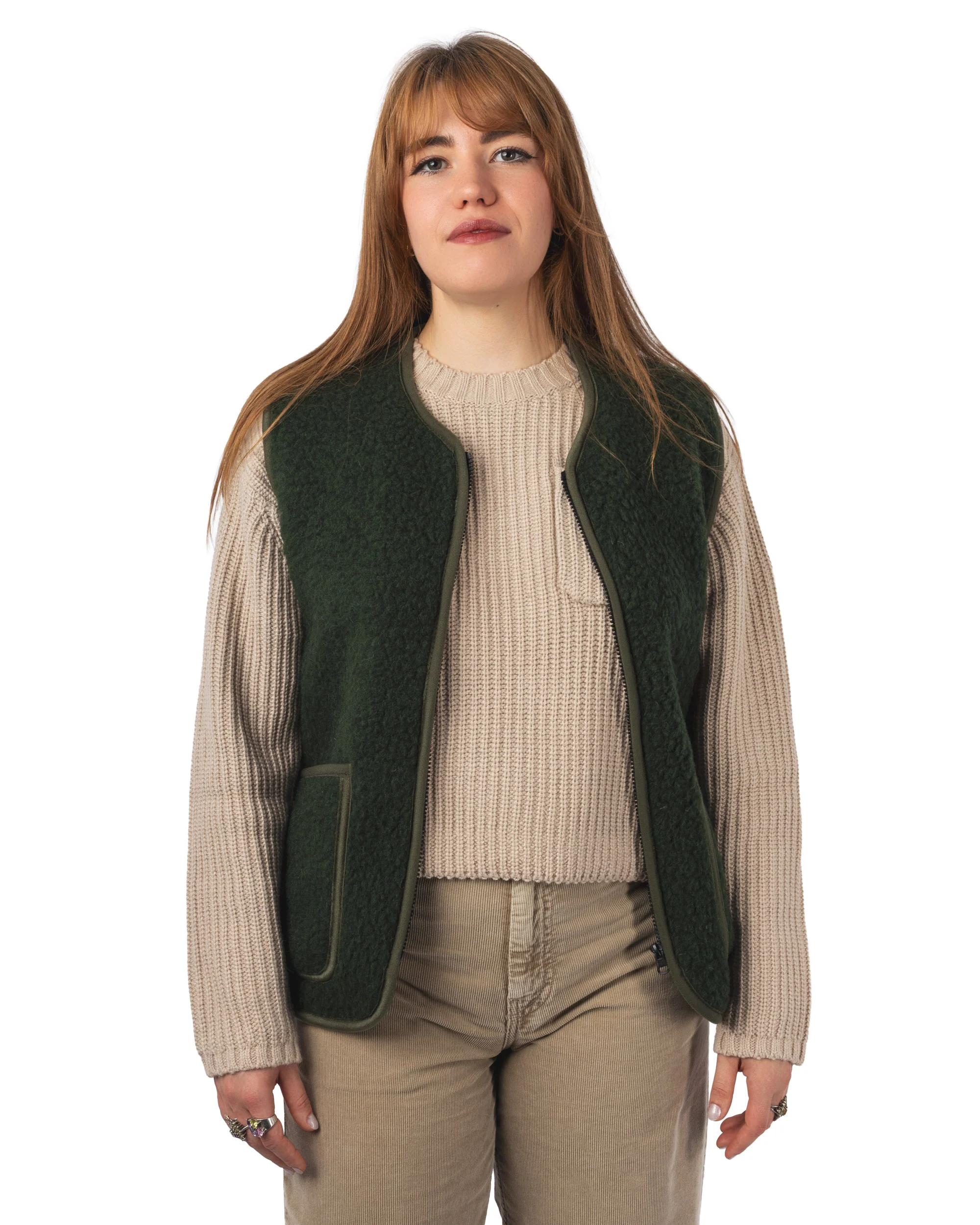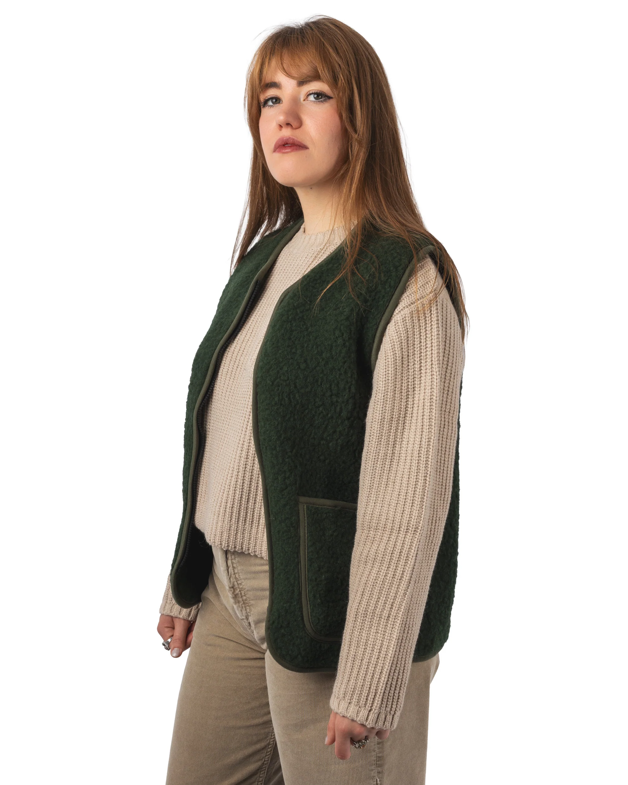 Polyvalent et durable, ce gilet en laine accompagne parfaitement les tenues hivernales, en ville comme en extérieur.