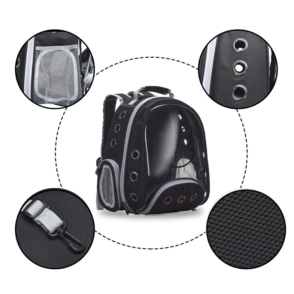 L’ensemble du panneau frontal du sac à dos est constitué d’une bulle en plastique transparente et durable qui offre à votre animal une vue dégagée tout en étant en sécurité sur votre dos. Plusieurs trous d’aération situés tout autour du sac en filet permettent une bonne circulation de l’air.
