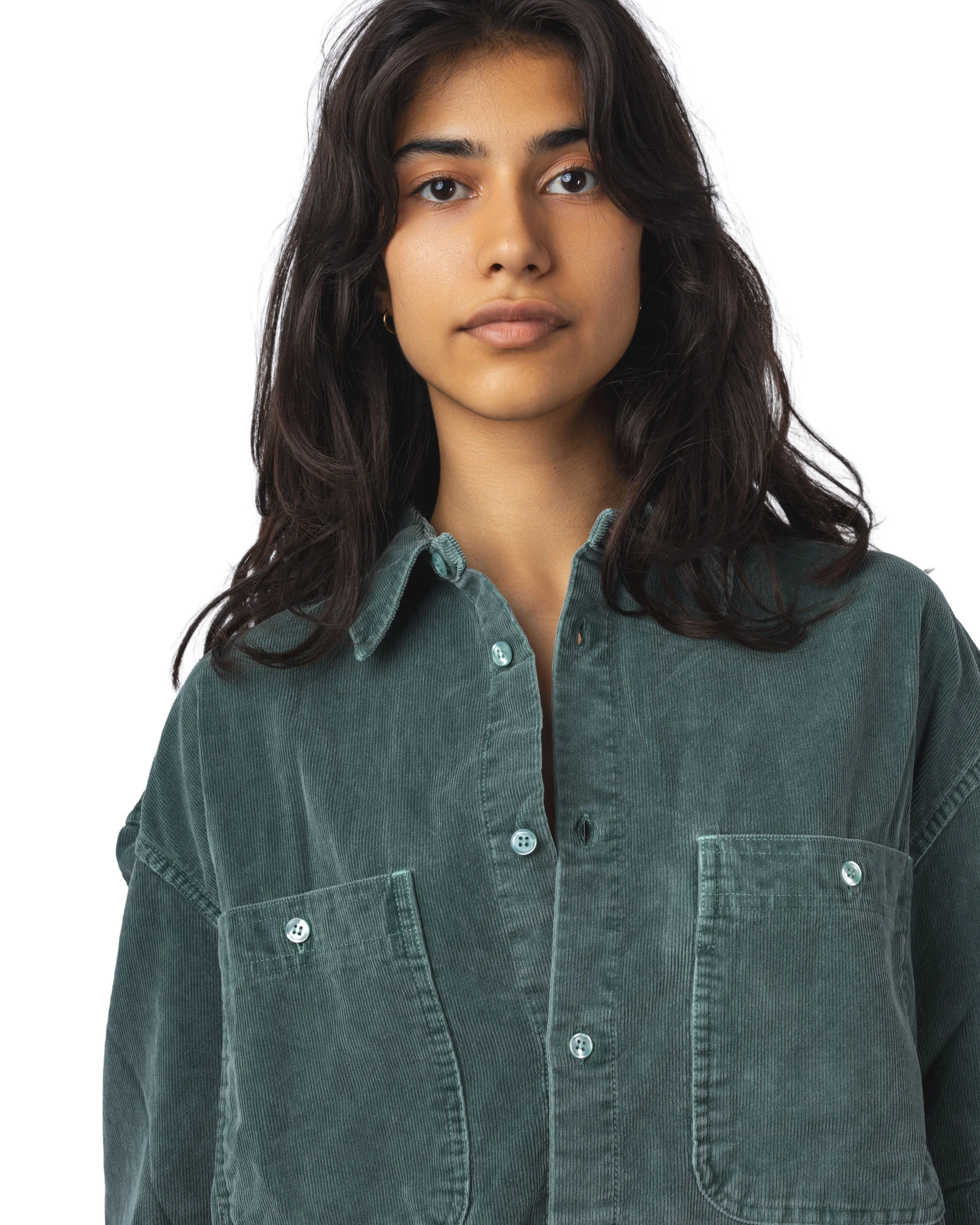 La Pigment Corduroy Shirt illustre ce savoir-faire avec une chemise confectionnée en velours côtelé pigmenté. La teinture apporte des nuances subtiles et une texture riche, renforçant l’aspect authentique de la pièce. Sa coupe ample et unisexe garantit confort et liberté de mouvement, tandis que les finitions soignées et les détails pratiques en font un essentiel du quotidien.