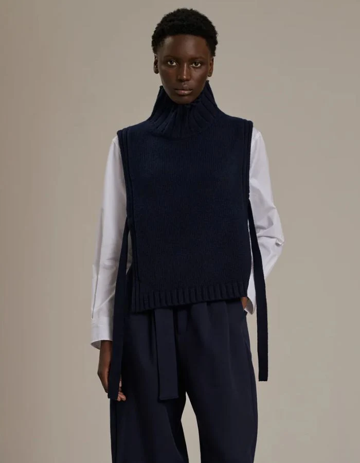 Le pull Or navy marine de la marque Soeur est un long plastron en laine, conçu pour ajouter une touche élégante et chaleureuse à n’importe quelle tenue. Ce modèle unique, ajustable grâce à ses deux liens sur les côtés, offre une coupe droite et un col montant qui se tient bien droit, apportant une structure et un style distinctif. Idéal pour réchauffer une tenue tout en permettant une grande liberté de mouvement, ce plastron est aussi pratique que tendance.