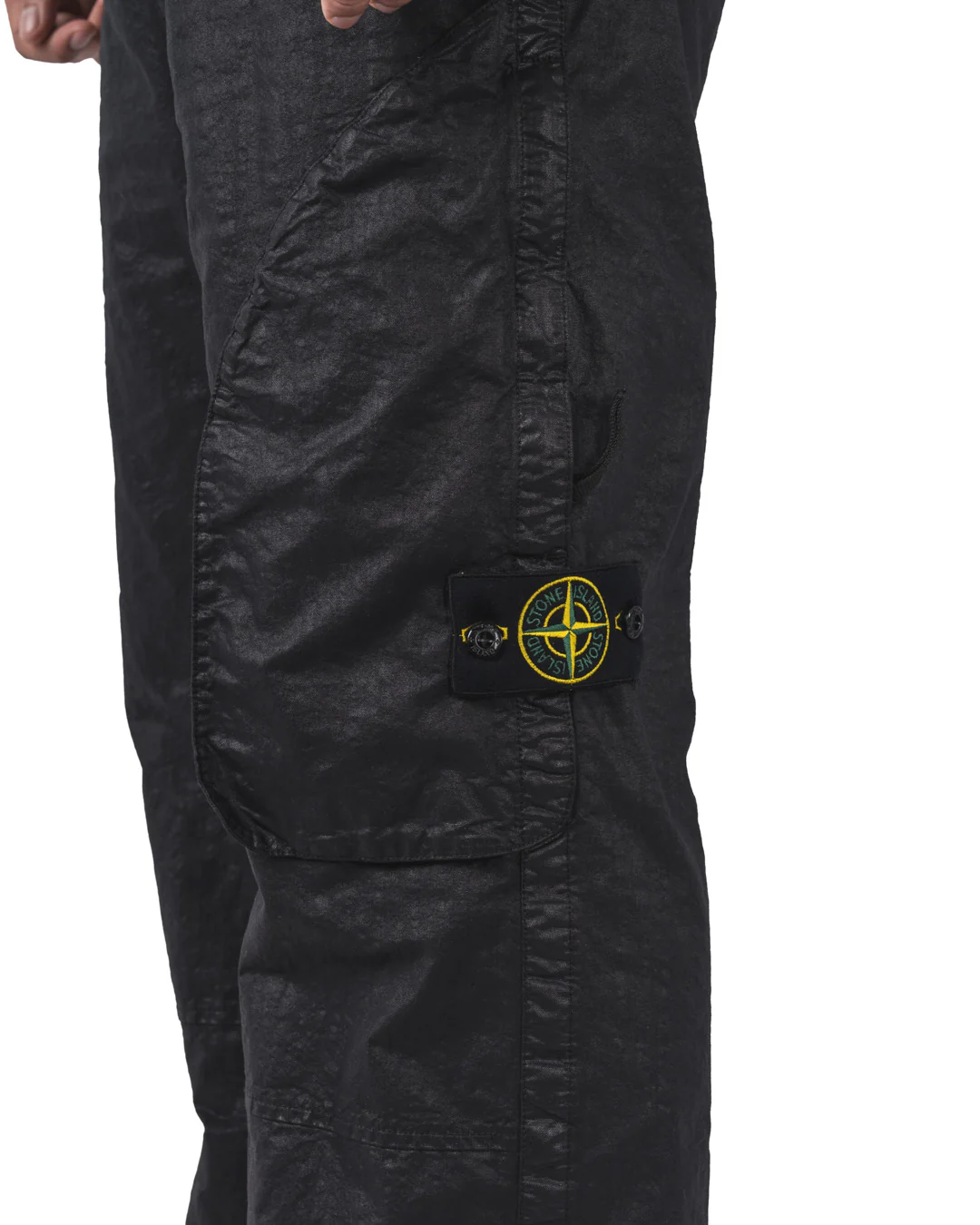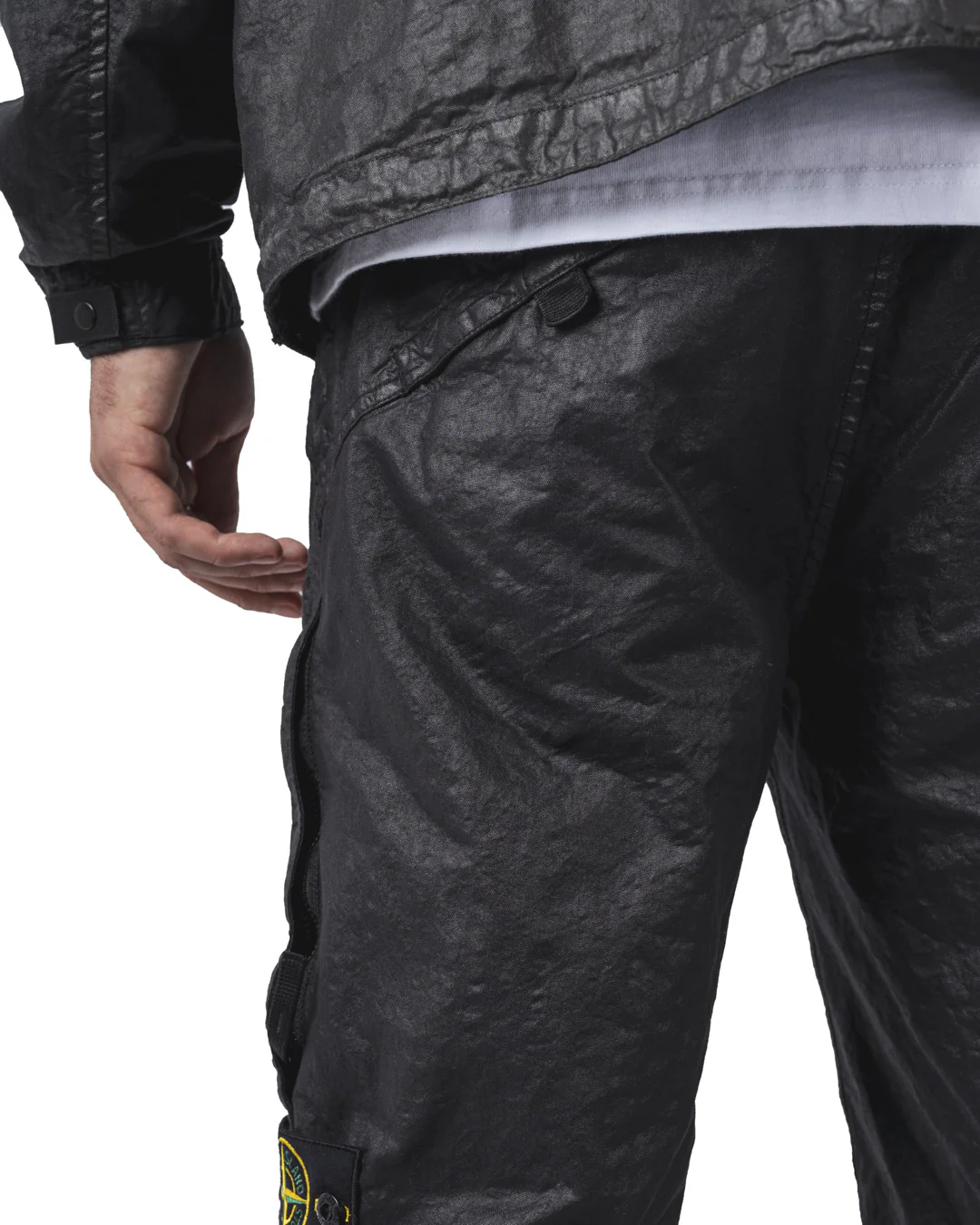 Finition : badge boussole Stone Island amovible sur la jambe, surpiqûres ton‑sur‑ton.
