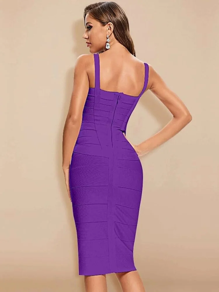 Mettez vos courbes en valeur avec cette robe violette à bretelles qui allie allure sensuelle et élégance structurée. Parfaite pour une soirée chic ou un événement glamour.
