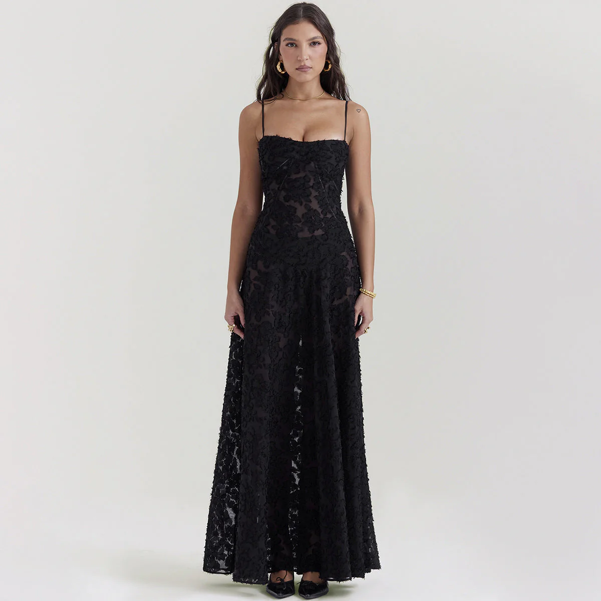 La robe Sana™ incarne l’équilibre parfait entre confort et élégance. Confectionnée dans un luxueux jacquard texturé de couleur crème vintage, orné de motifs floraux, elle offre une sensation douce et raffinée sur la peau. Son dos à lacets apporte une touche vintage irrésistible, faisant de cette robe le choix idéal pour vos soirées romantiques.