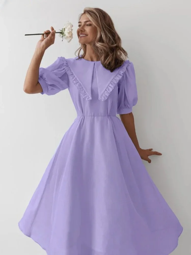 Conçue pour allier élégance naturelle et aisance au quotidien, cette robe chemise violette est un indispensable de votre garde-robe d’été. Sa coupe mi-longue en A-line épouse délicatement les formes tout en offrant une belle liberté de mouvement. Le tissu en polyester léger assure un tombé fluide, parfait pour les journées ensoleillées. Son col chemise structuré apporte une touche sophistiquée tandis que les manches courtes bouffantes ajoutent du volume et de la féminité. Pensée pour un porter facile, elle s’enfile en un clin d’œil grâce à sa fermeture pull-over. Que ce soit pour un look bureau ou une sortie décontractée, cette robe vous accompagnera avec style et confort.