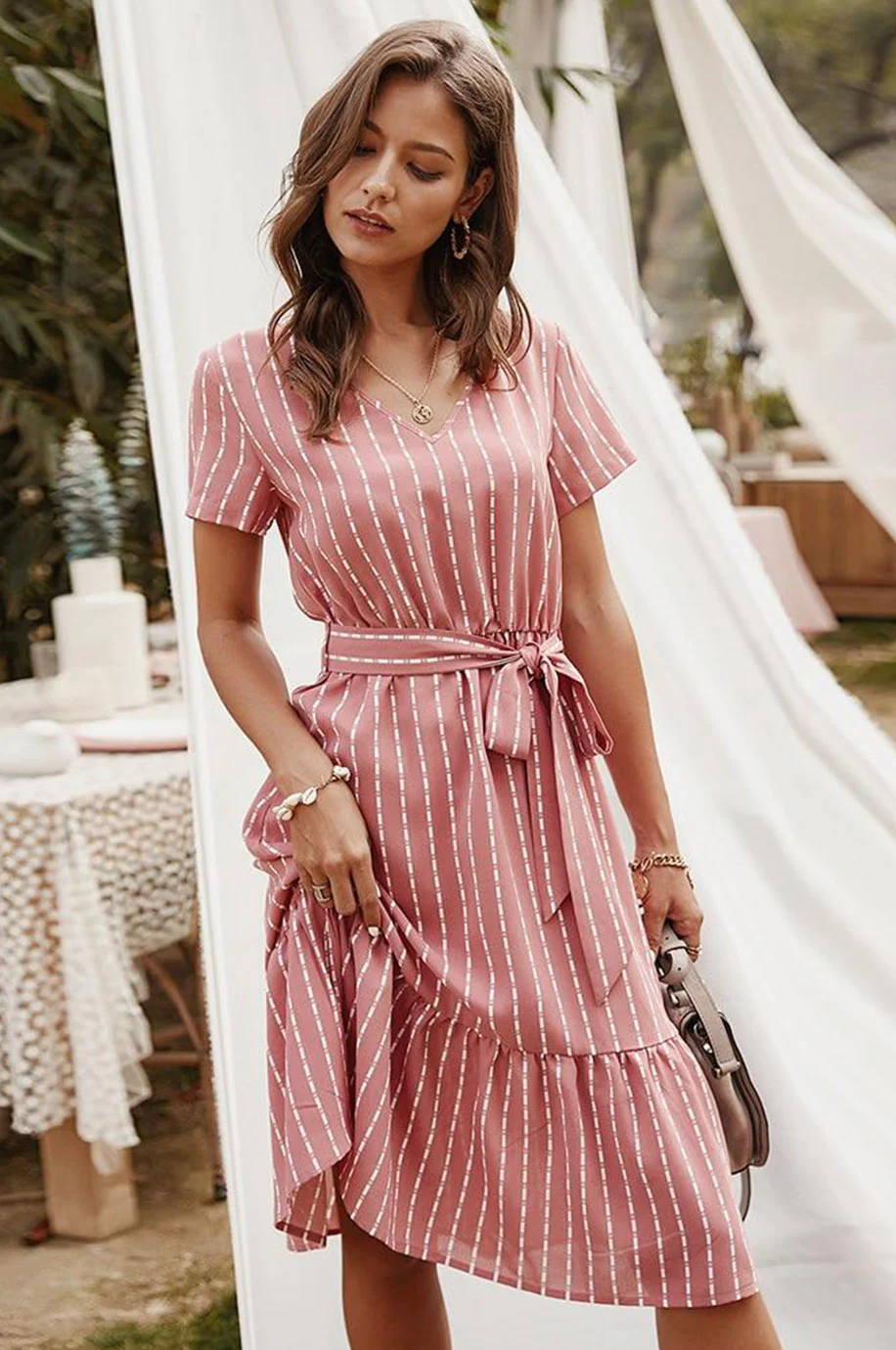 Votre meilleure copine vous a nommé demoiselle d’honneur à son mariage sur le thème bohème ? Cette robe bohème chill et habillée est la robe qu’il vous faut ! Son look champêtre et sa taille marquée par un noeud lâche lui donne un ton estival et élégant.