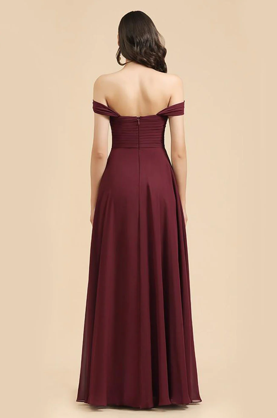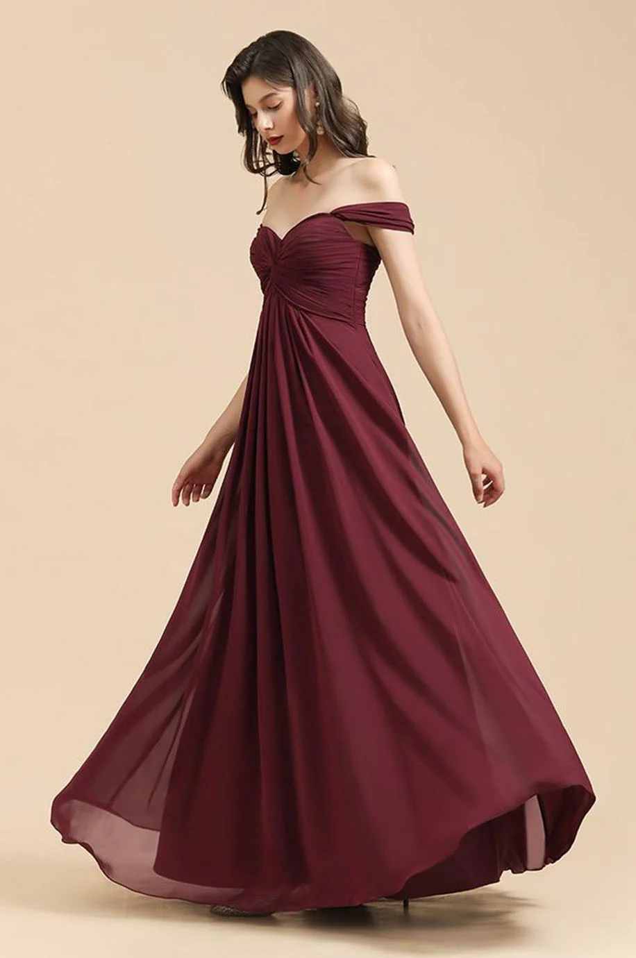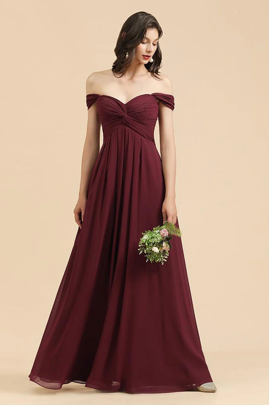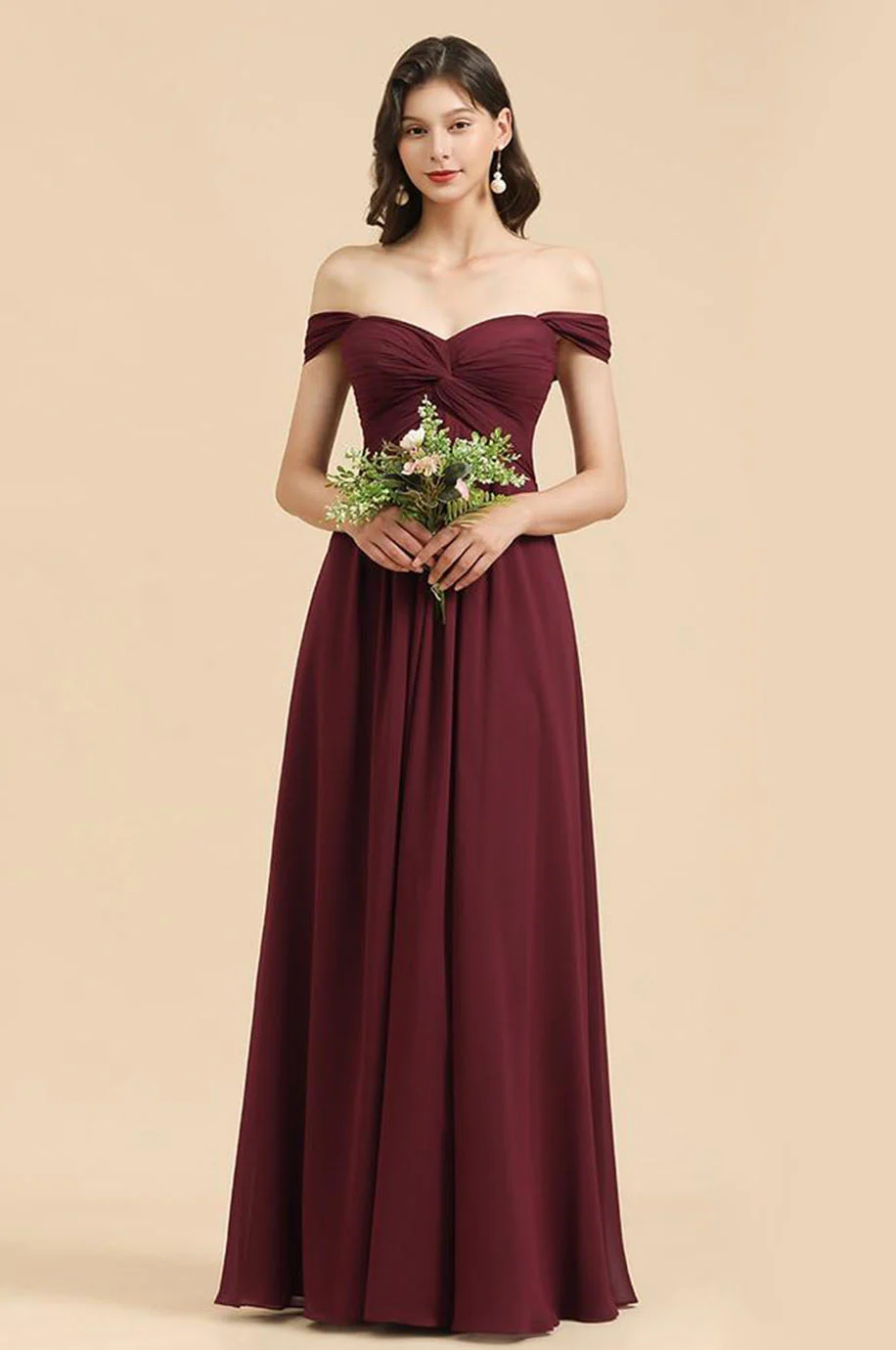 Pour le mariage de votre copine portez cette magnifique robe longue de couleur bordeaux. La robe longue demoiselle d’honneur bordeaux ira parfaitement au côté de la mariée pour une série de photos inoubliables.