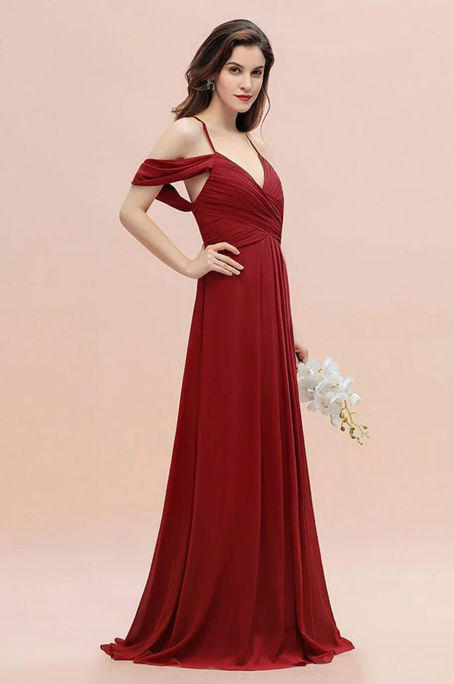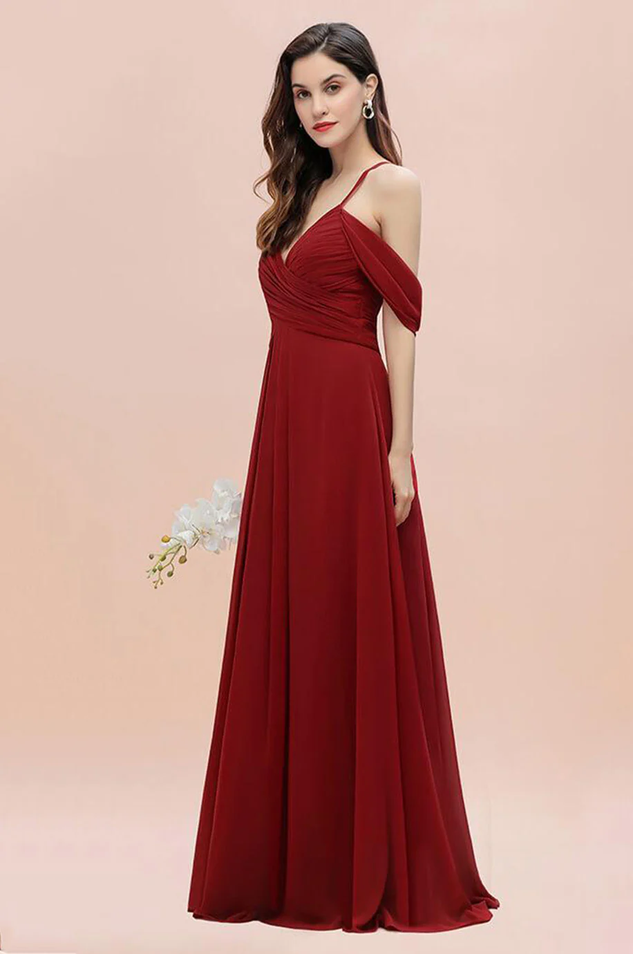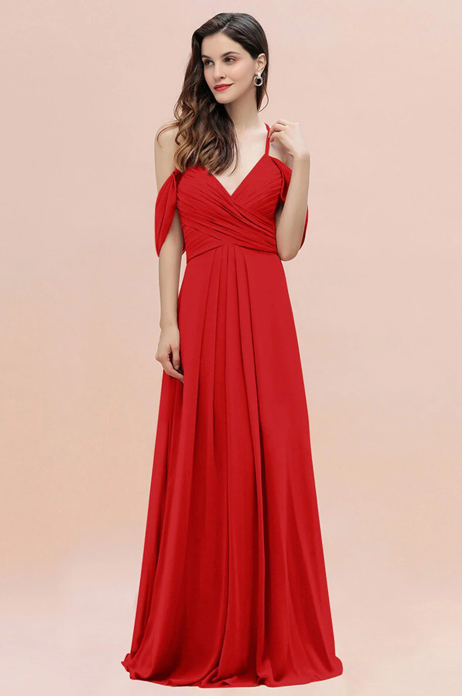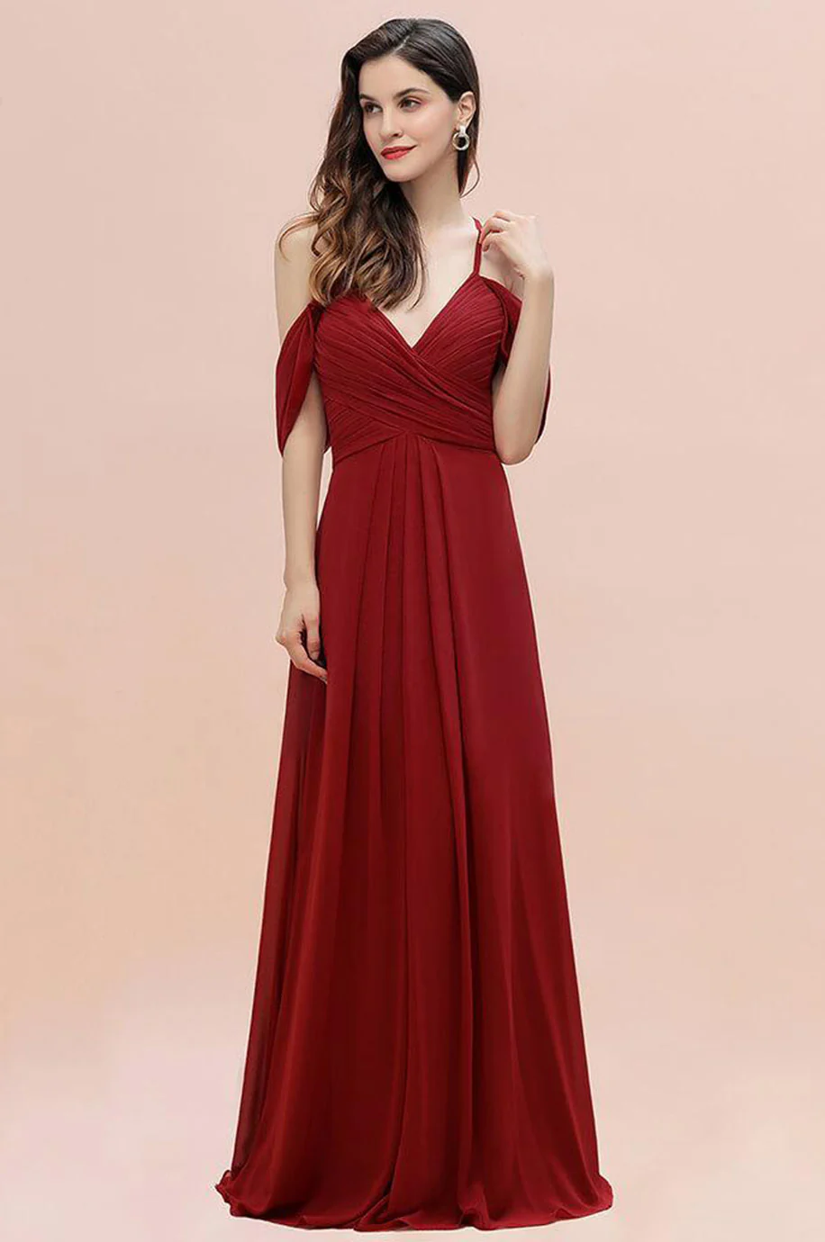 Observez le style de cette robe demoiselle d’honneur longue rouge